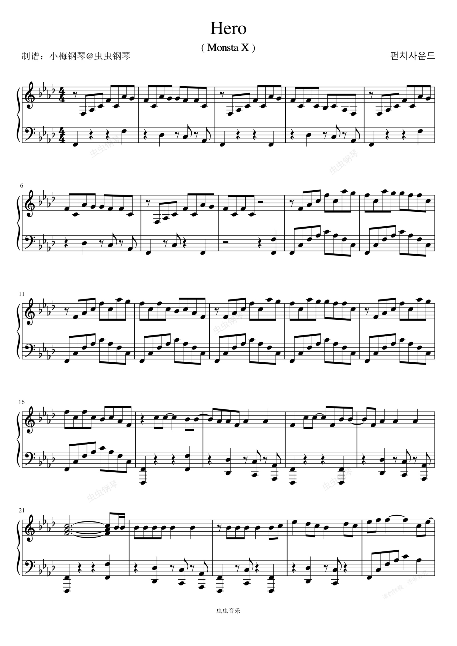 钢琴谱:HERO (Korean Ver.) - Monsta X (몬스타엑스)