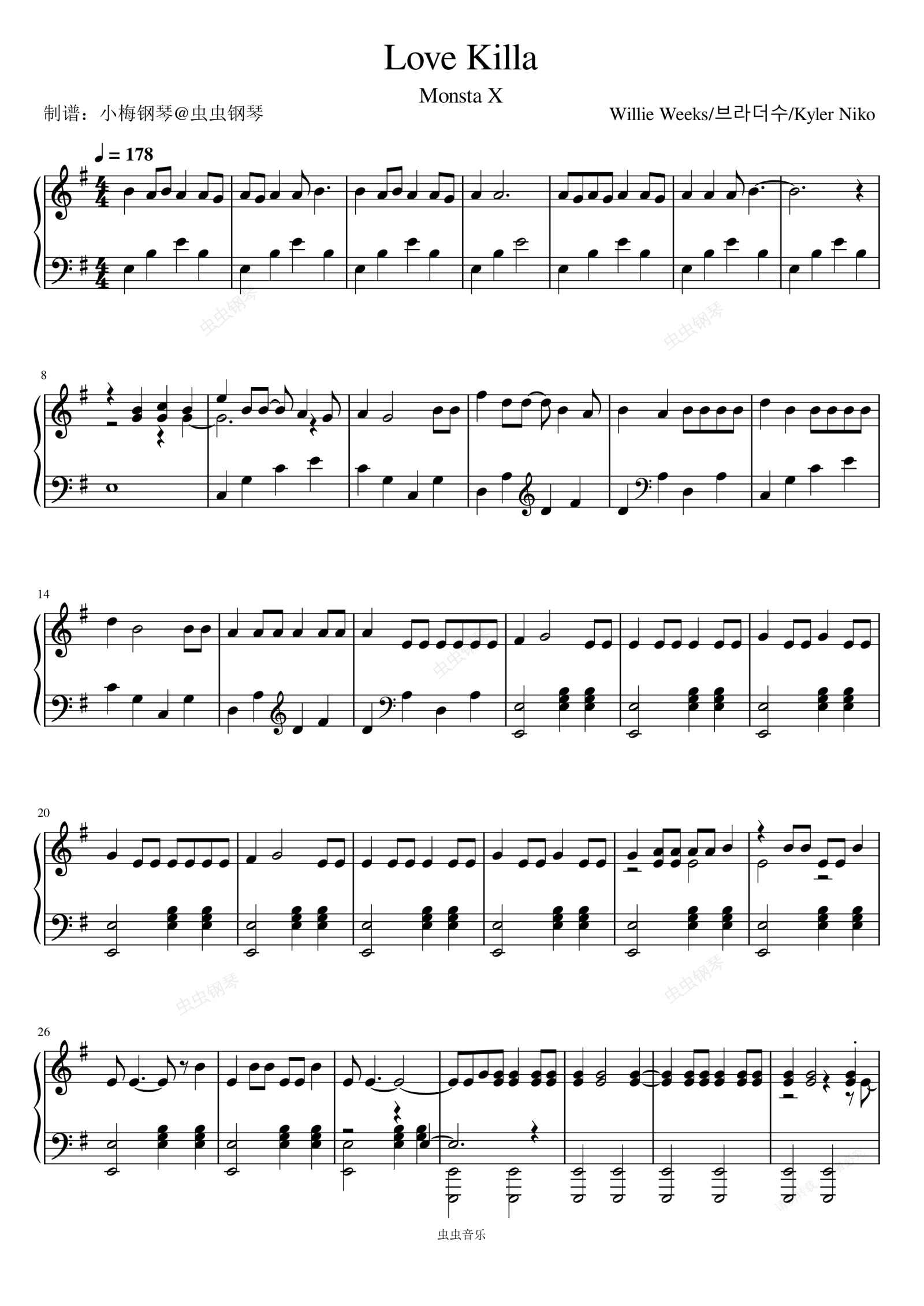 钢琴谱:Love Killa - Monsta X (몬스타엑스)