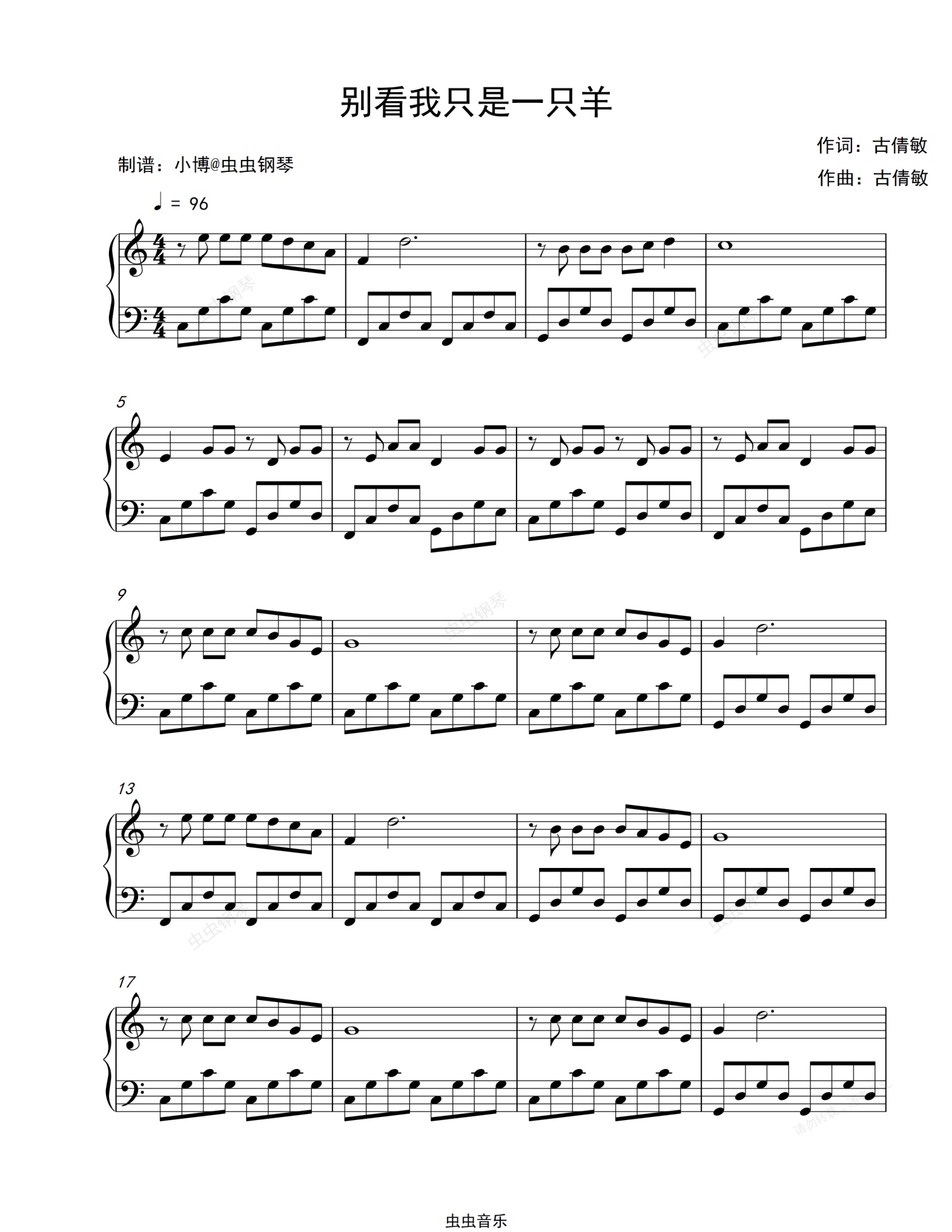 钢琴谱:别看我只是一只羊-喜羊羊与灰太狼主题曲-古倩敏