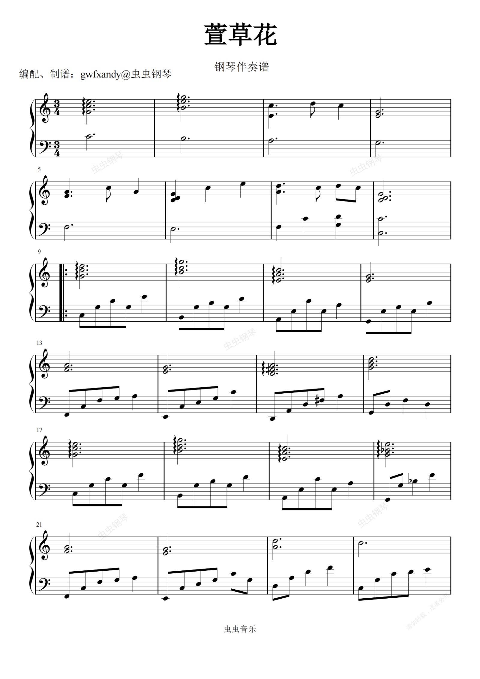 钢琴谱:《萱草花》钢琴伴奏(C调超级简单)