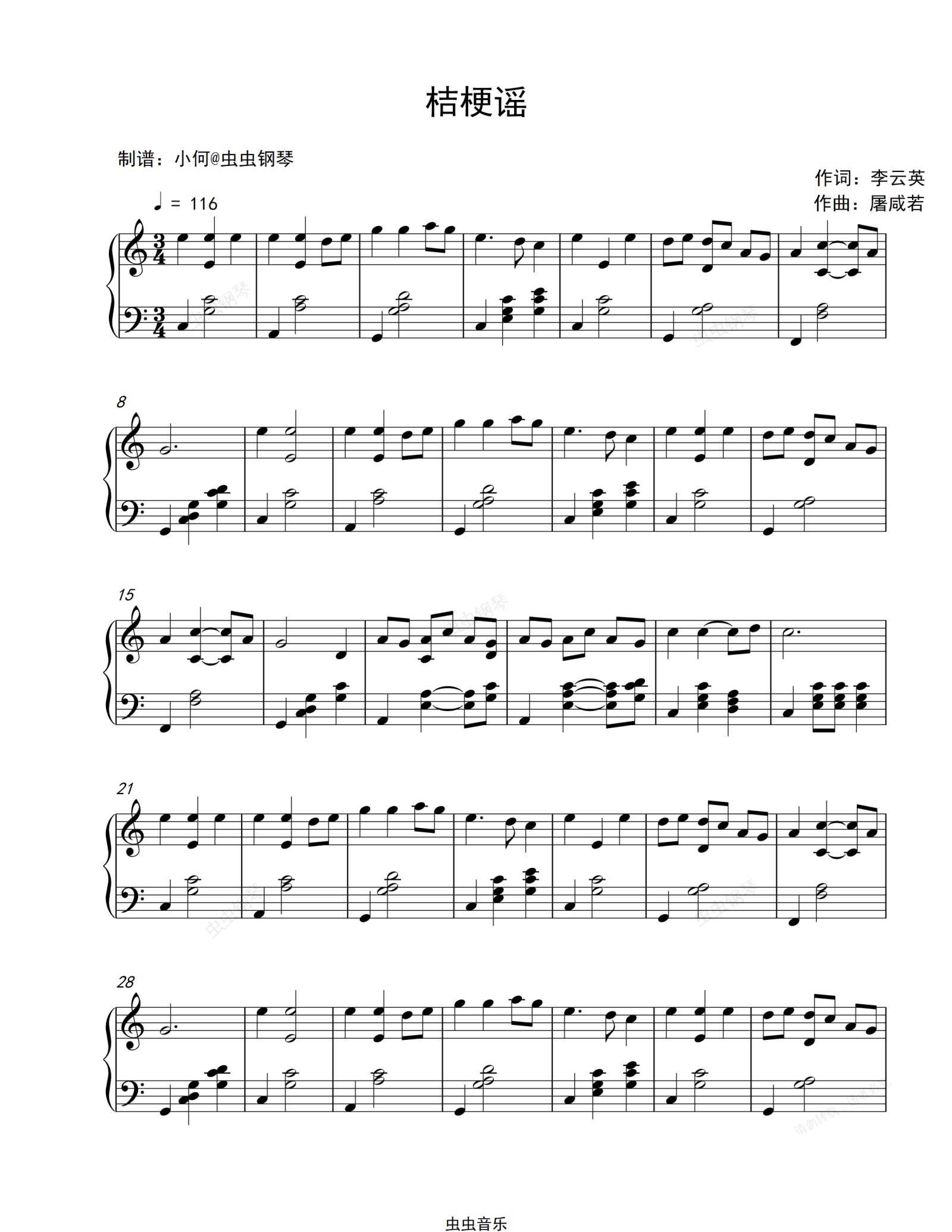 钢琴谱:桔梗谣-朝鲜民歌-黑鸭子