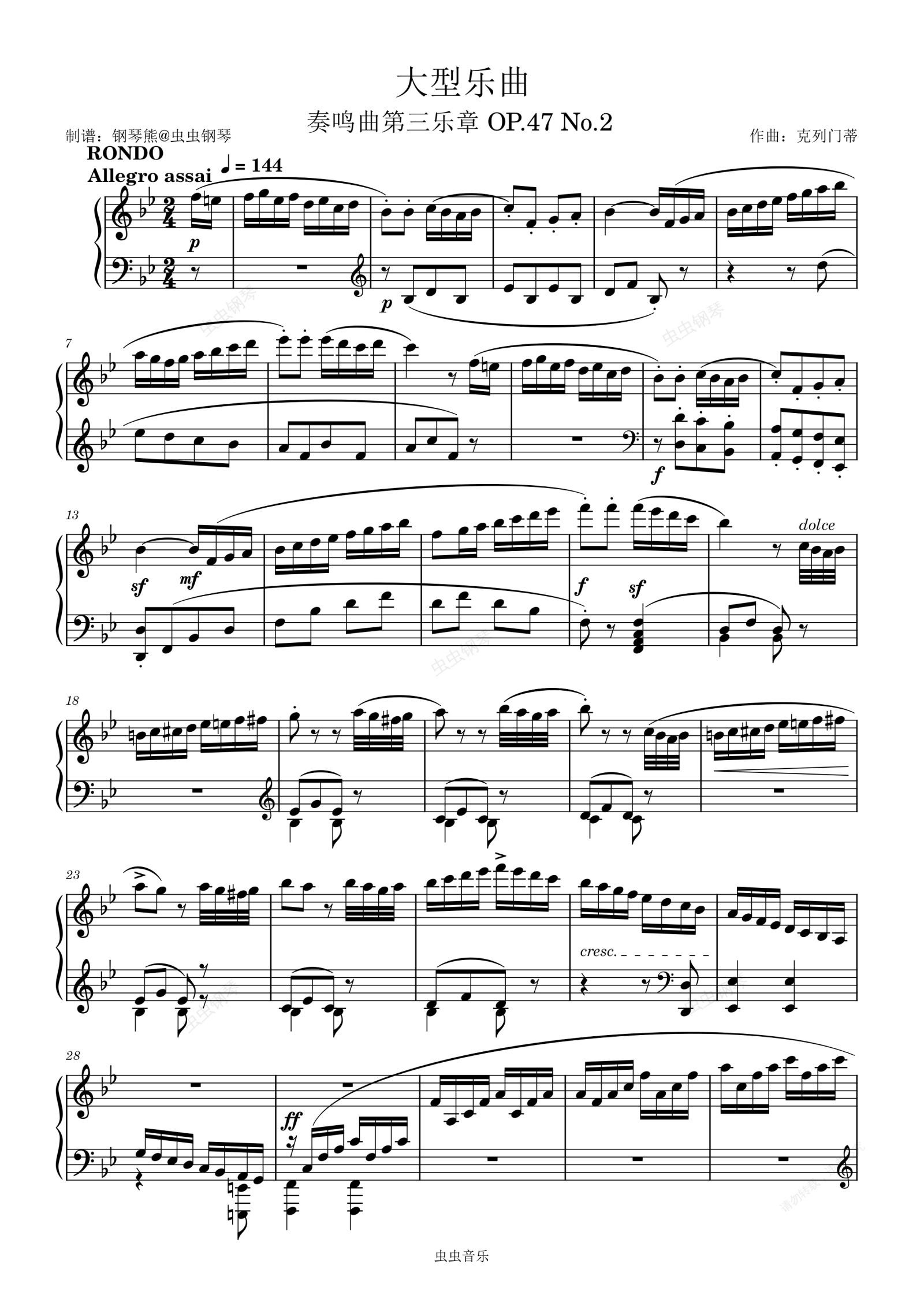 钢琴谱:大型乐曲 奏鸣曲第三乐章 OP.47 NO.2 克列门蒂