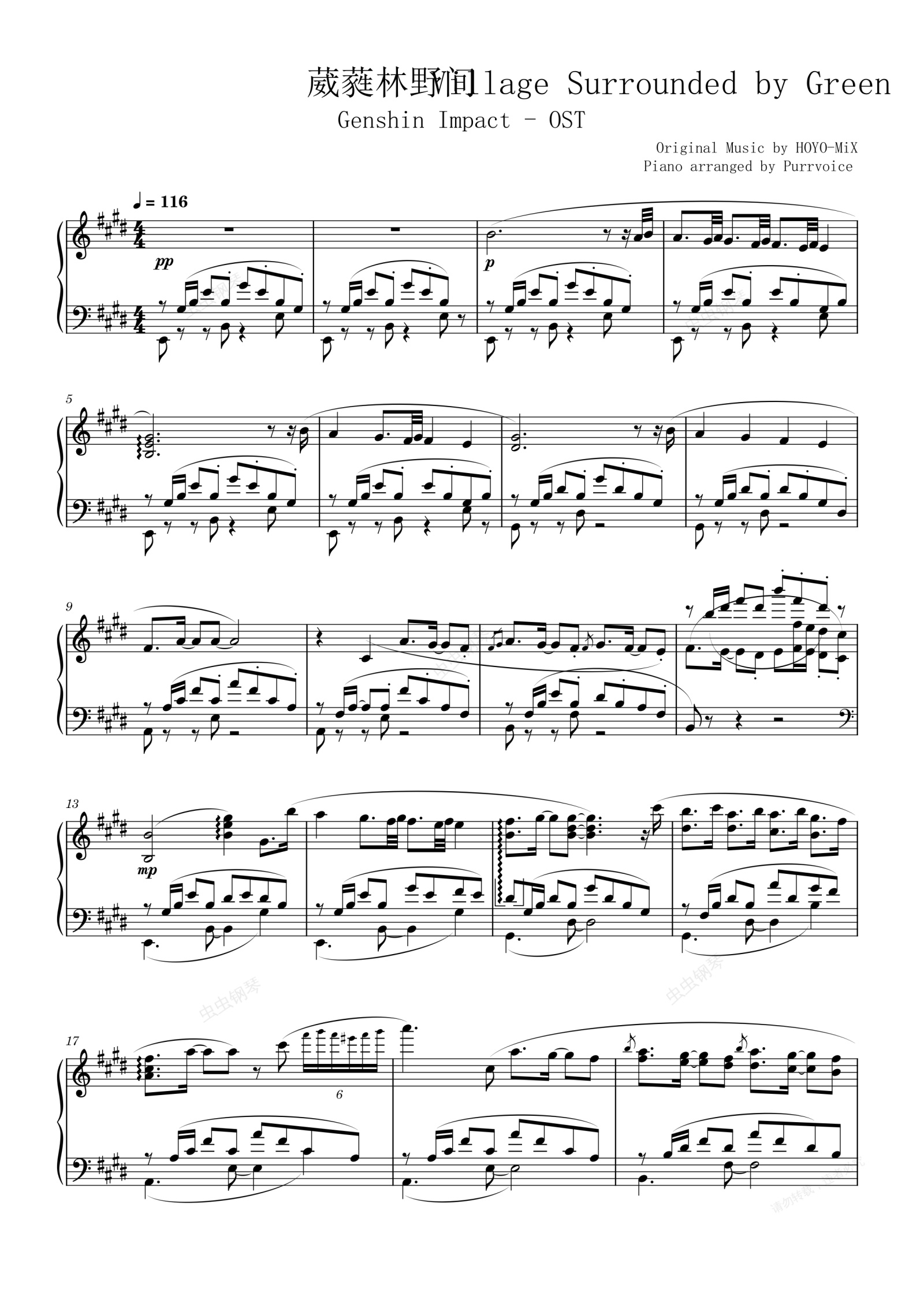 钢琴谱:维摩庄白天BGM - 葳蕤林野间 Village Surrounded by Green