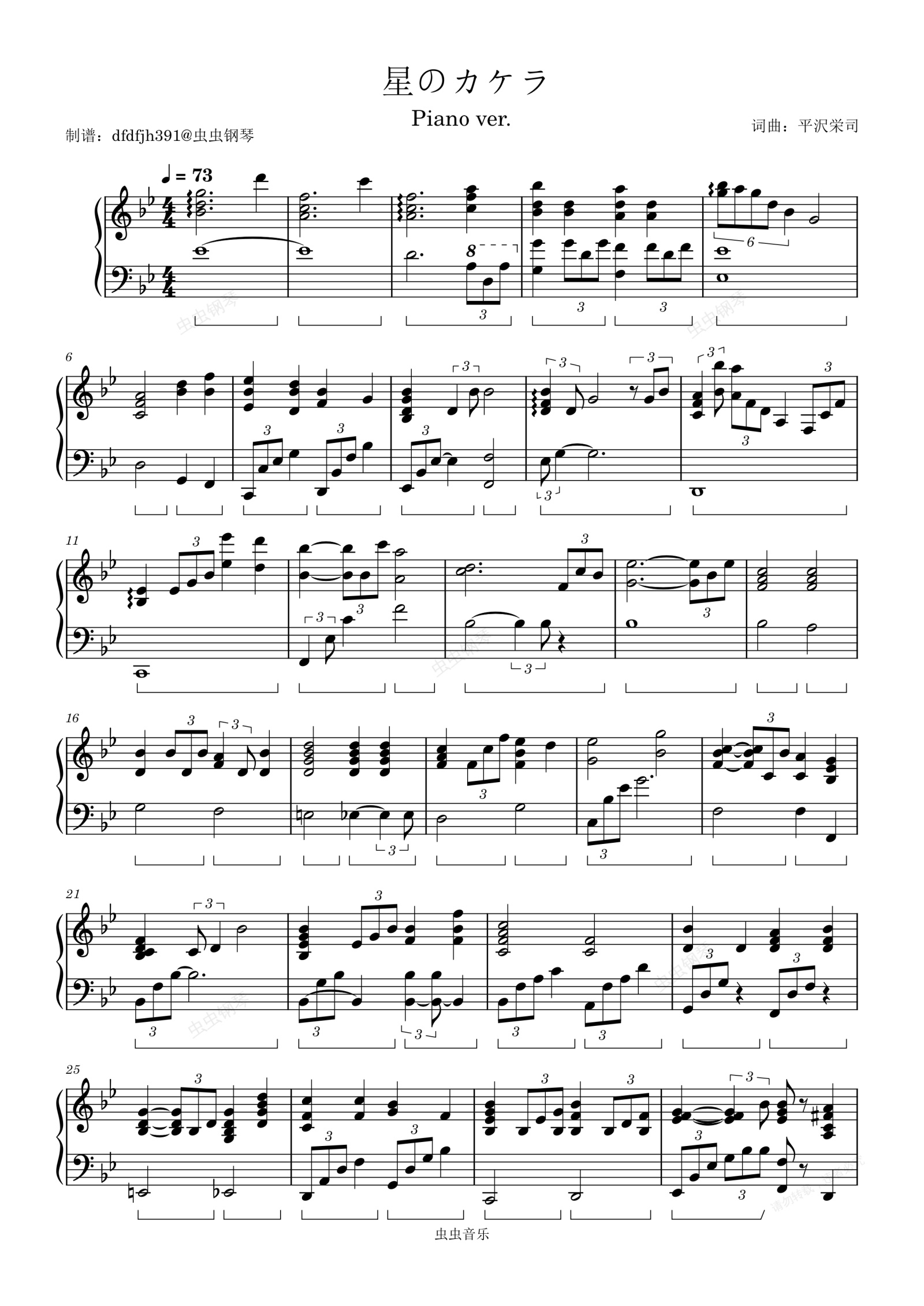钢琴谱:星のカケラ(piano ver.)-初音未来(高还原完整扒谱)