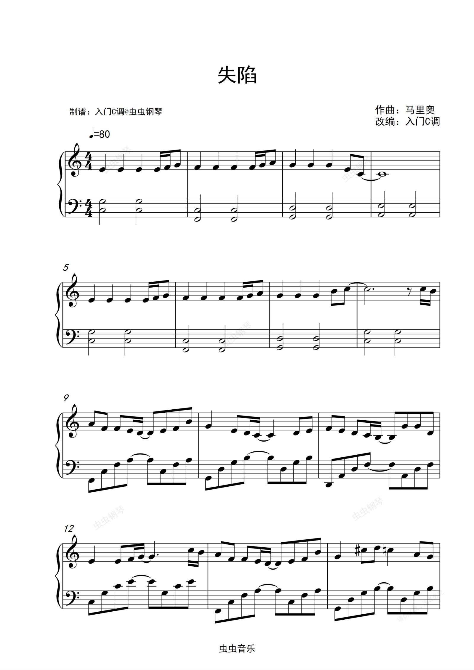 钢琴谱:《失陷》(广播剧《某某》主题曲)入门C调简单版