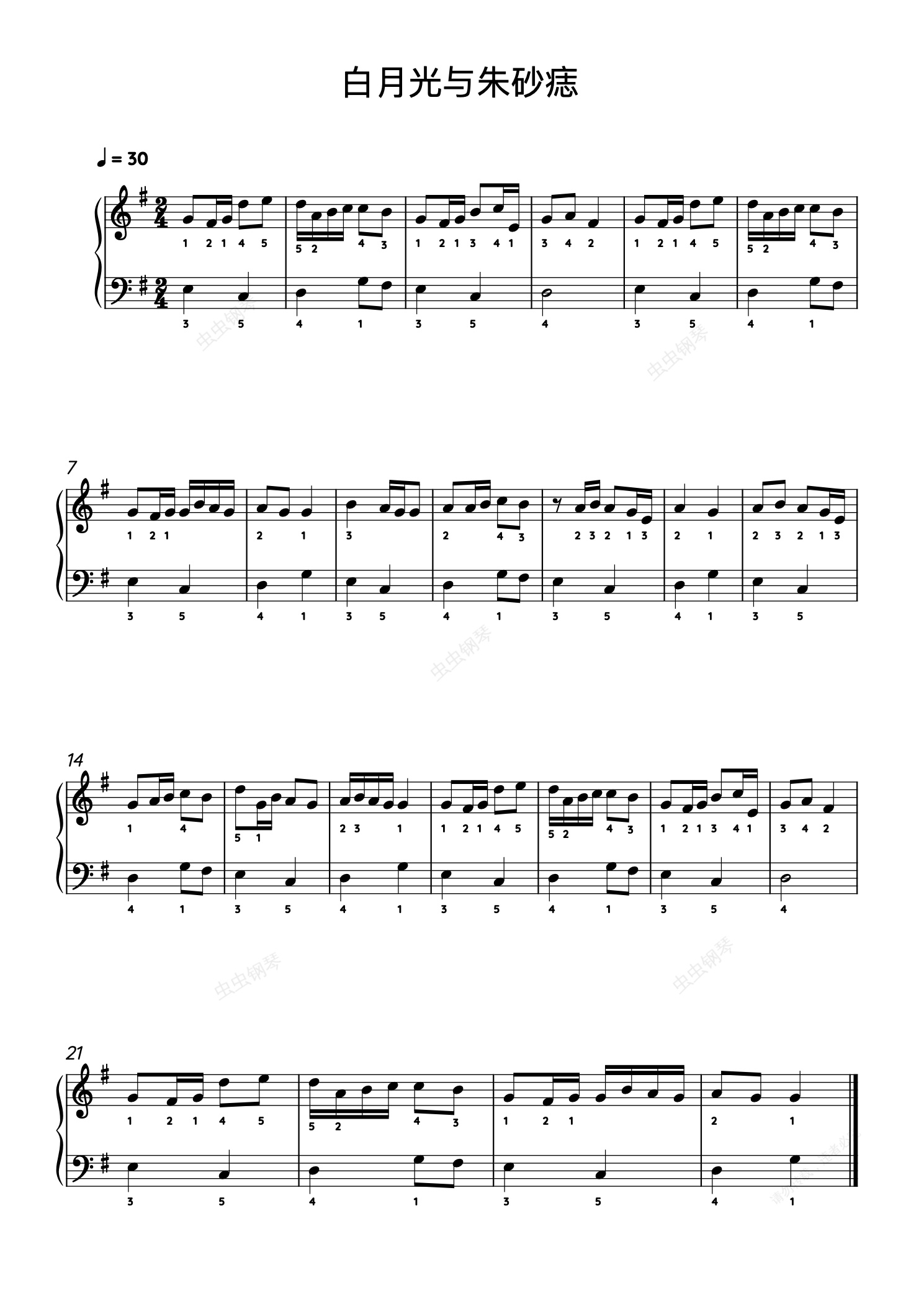 钢琴谱:白月光与朱砂痣