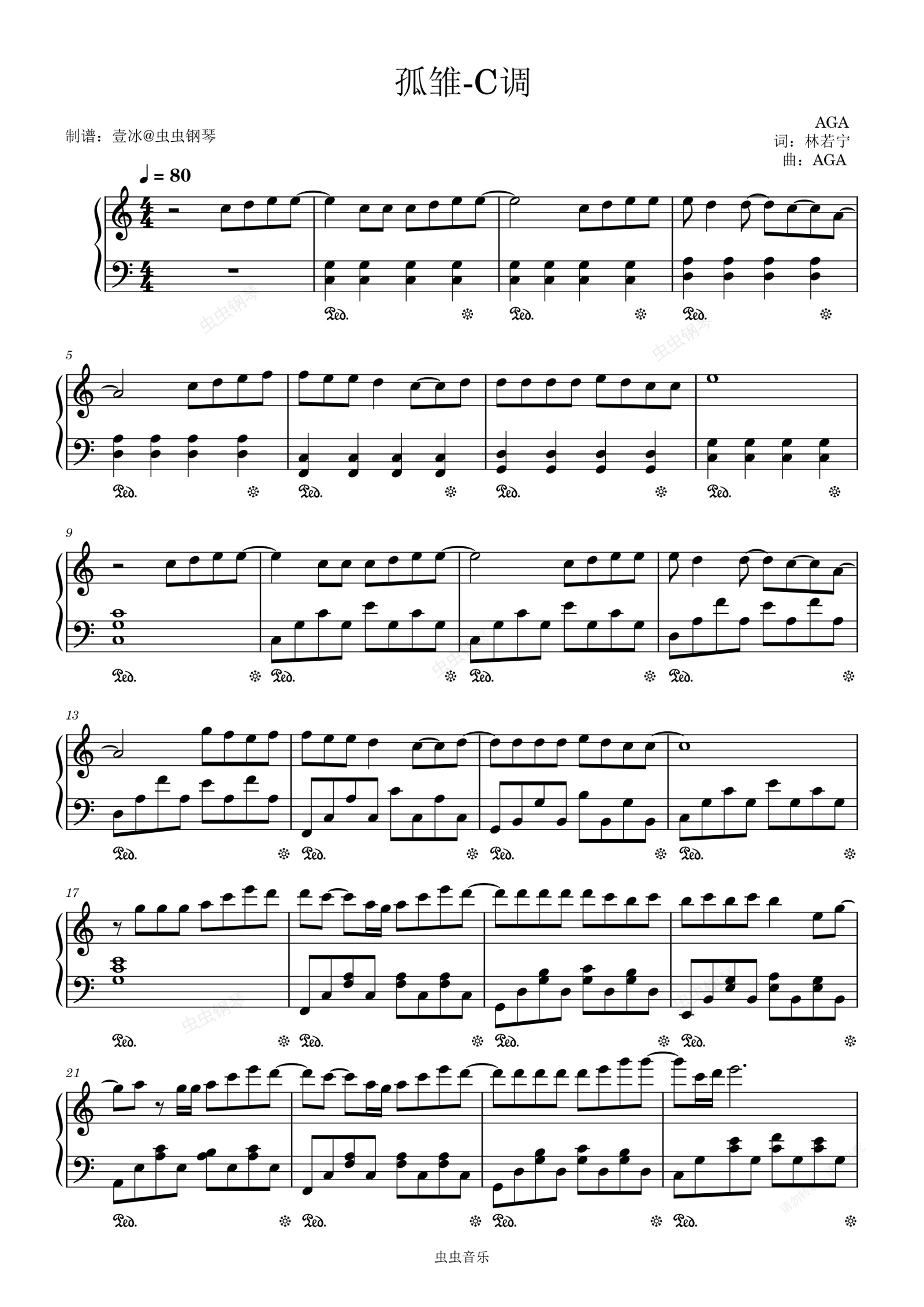 钢琴谱:孤雏//AGA-C调