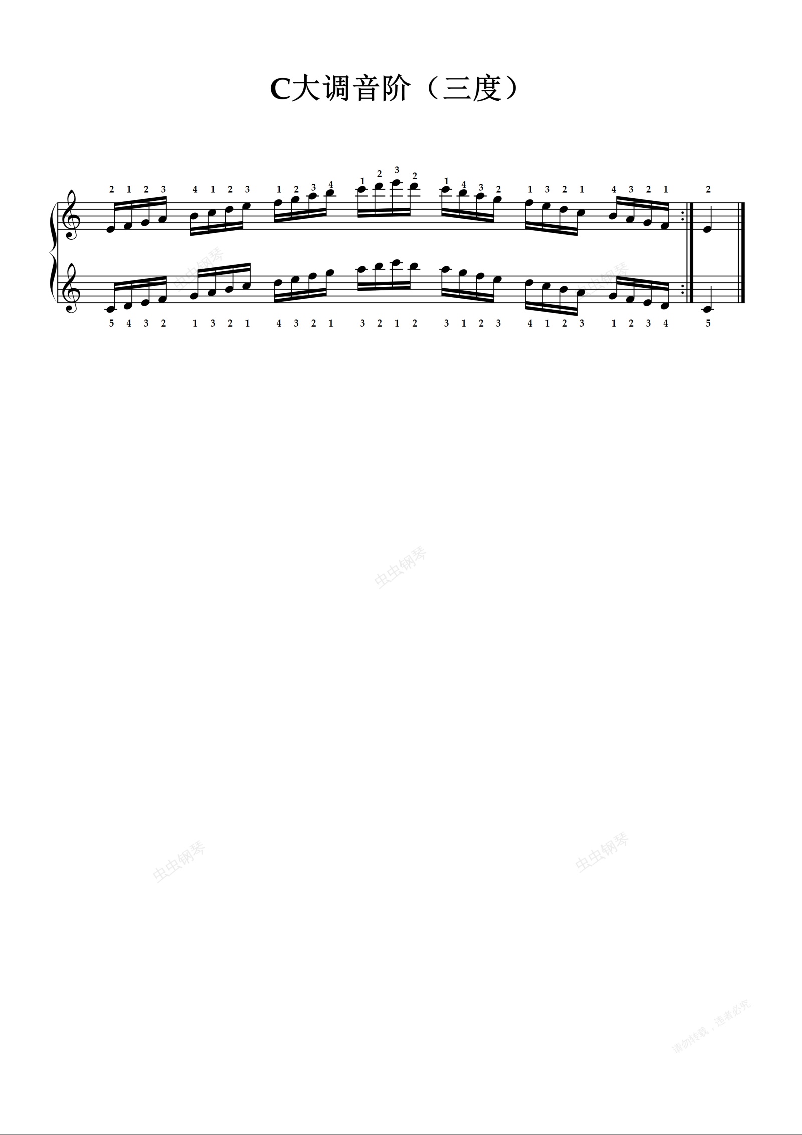 钢琴谱:C大调音阶(三度)