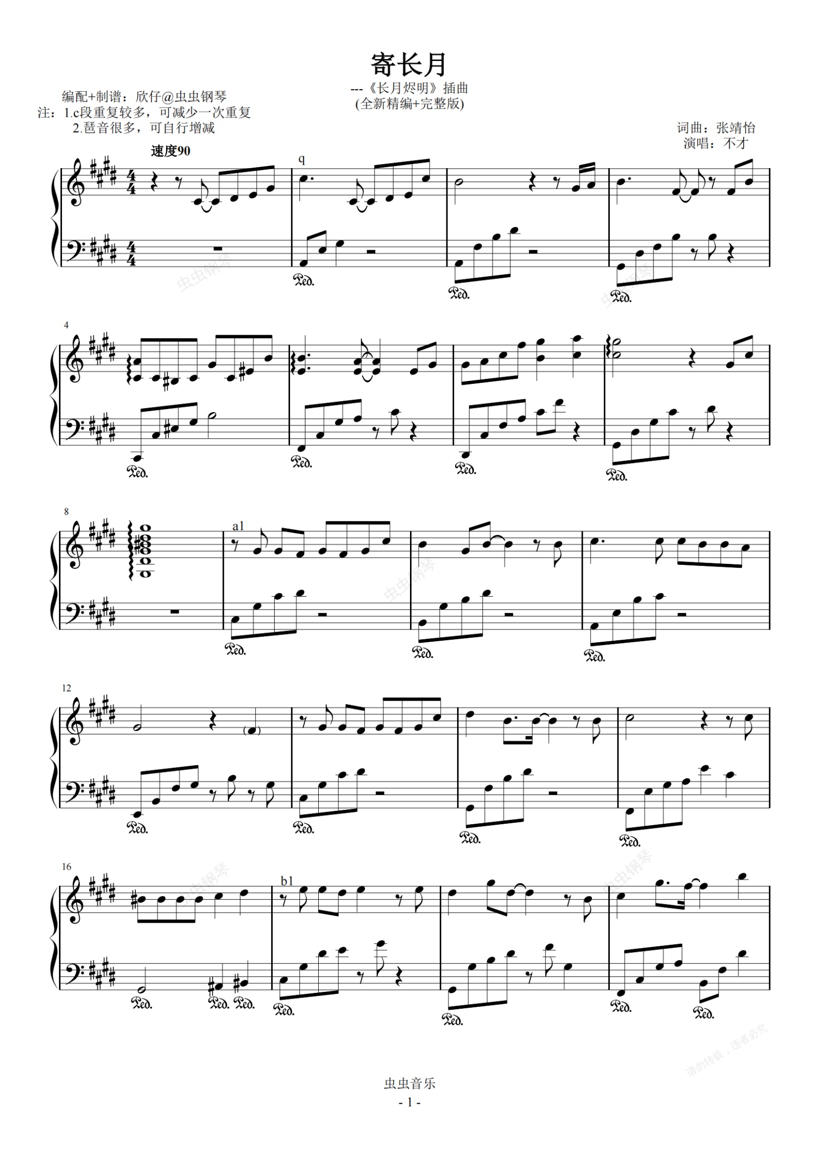钢琴谱:不才-E《寄长月》(《长月烬明》插曲、全新精编+完整版)