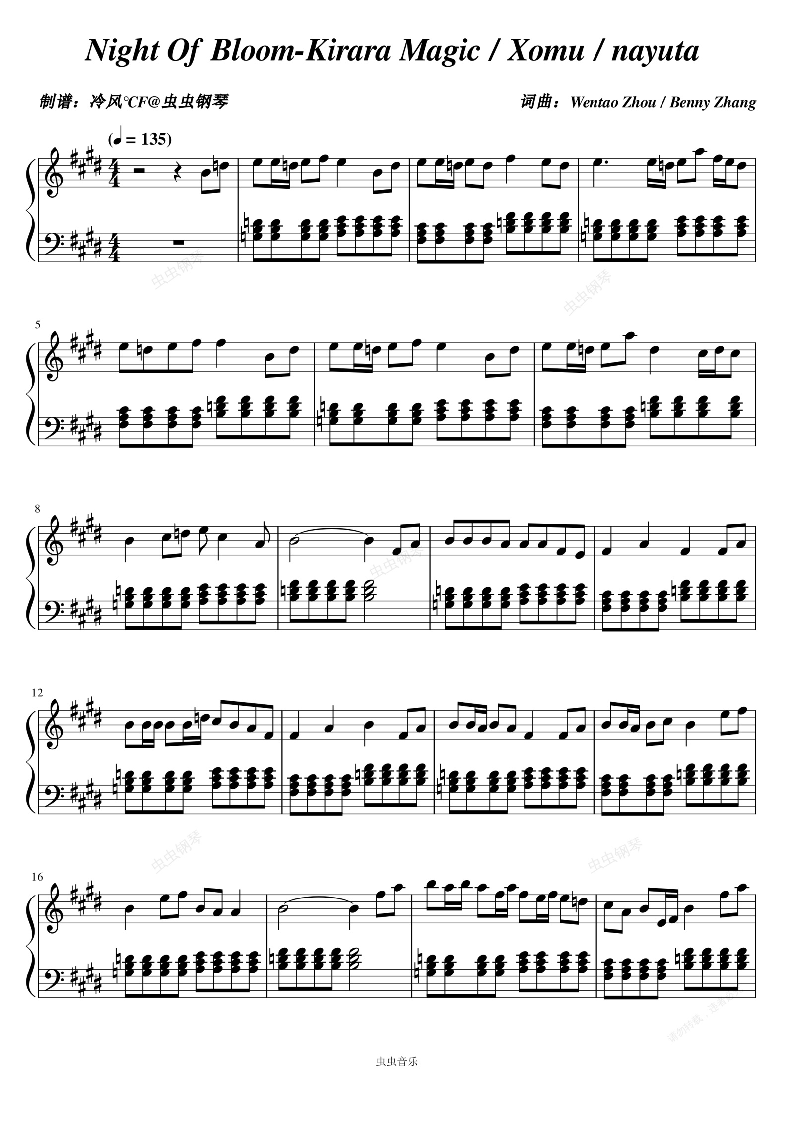 钢琴谱:Night Of Bloom-Kirara Magic / Xomu / nayuta (葉月なの)