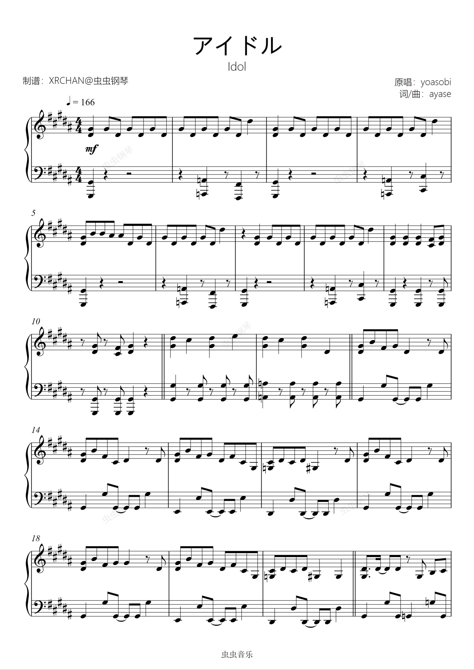 钢琴谱:アイドル YOASOBI《我推的孩子》OP 初级