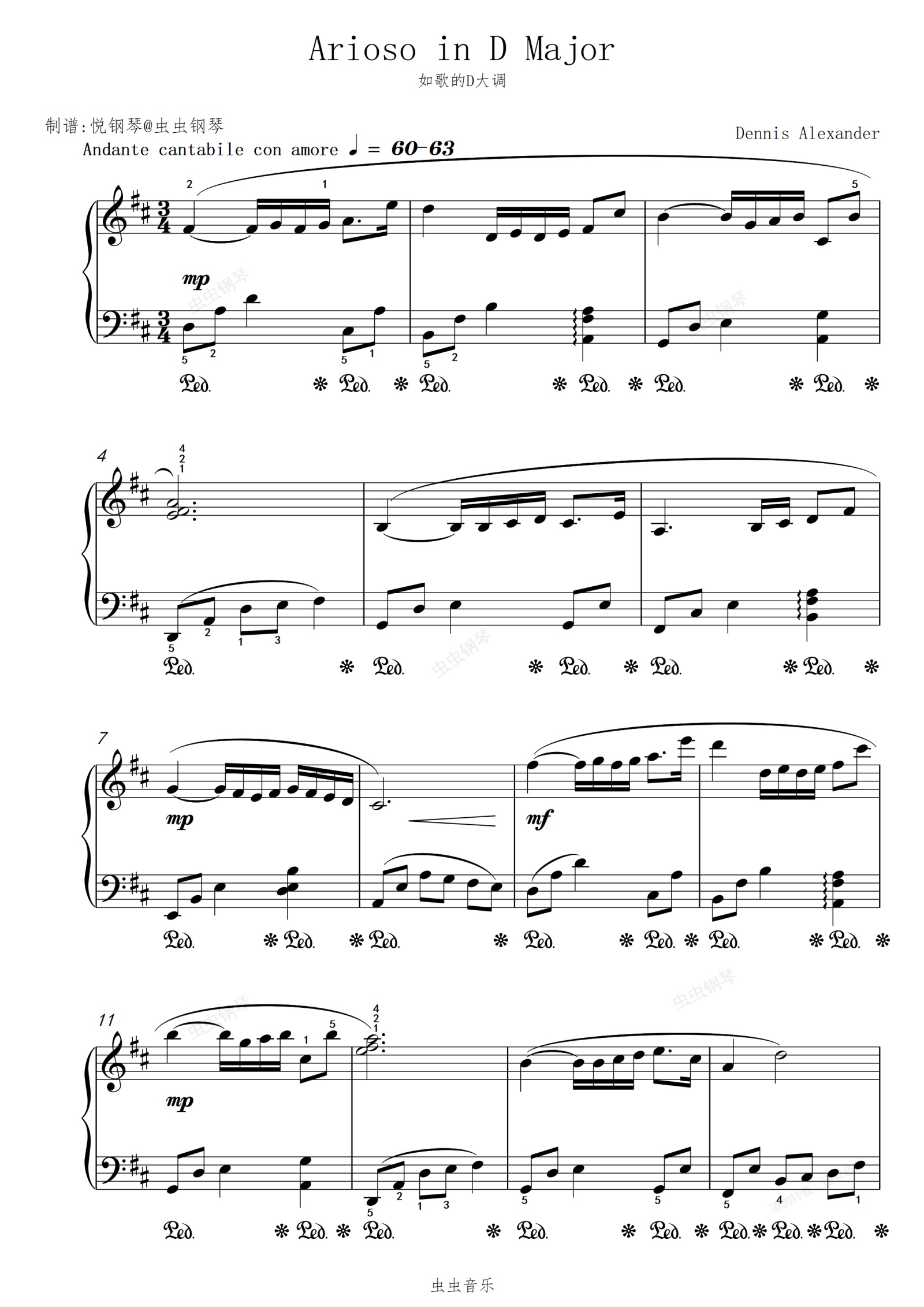 钢琴谱:如歌的D大调【温暖治愈】