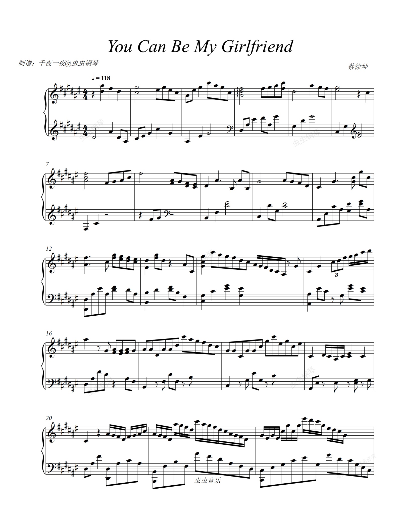 钢琴谱:钢琴cover-《You can be my girlfriend 》蔡徐坤
