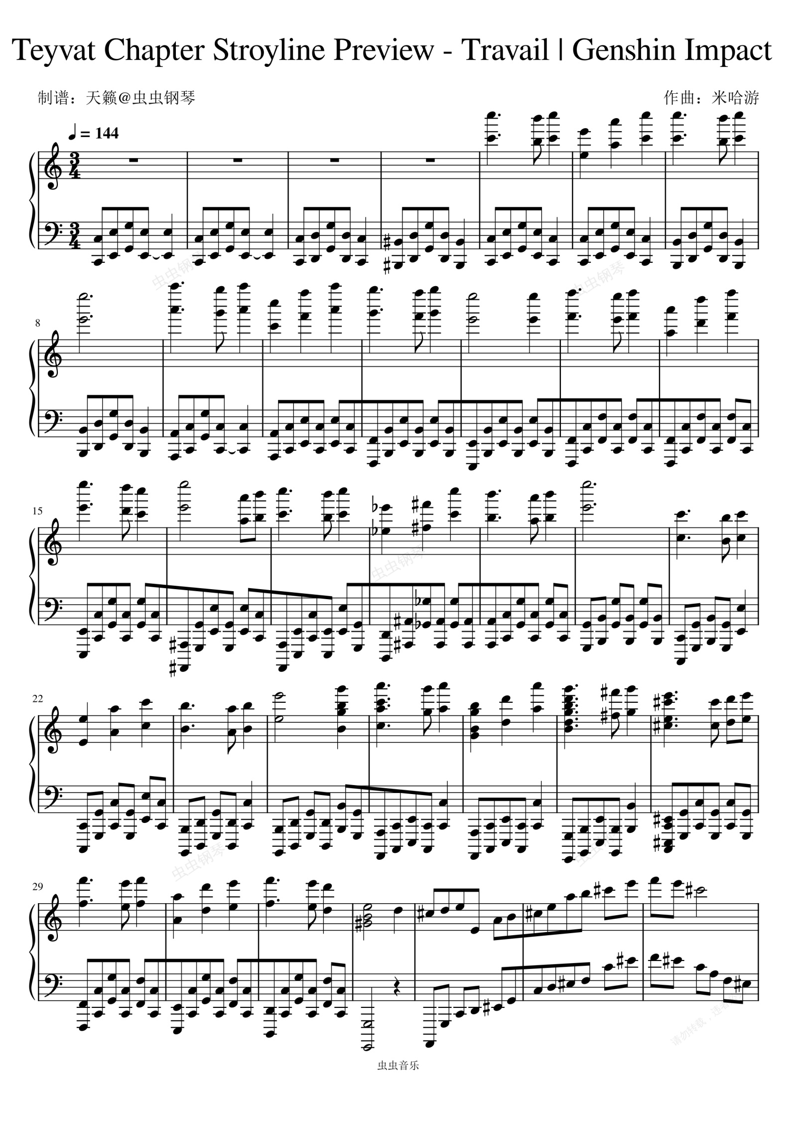 钢琴谱:原神 提瓦特篇 预告PV钢琴曲-米哈游