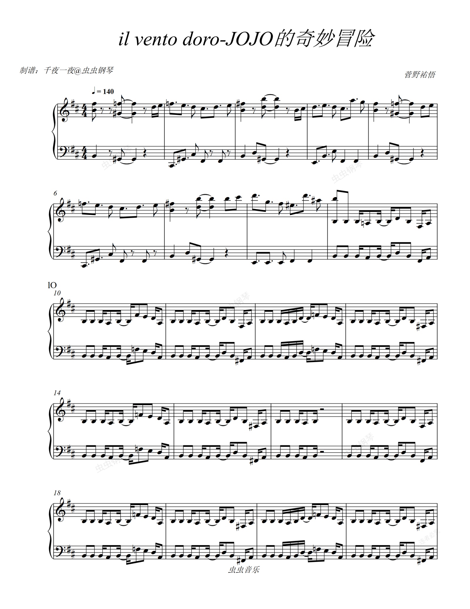 钢琴谱:il vento doro-JOJO的奇妙冒险黄金之风OST