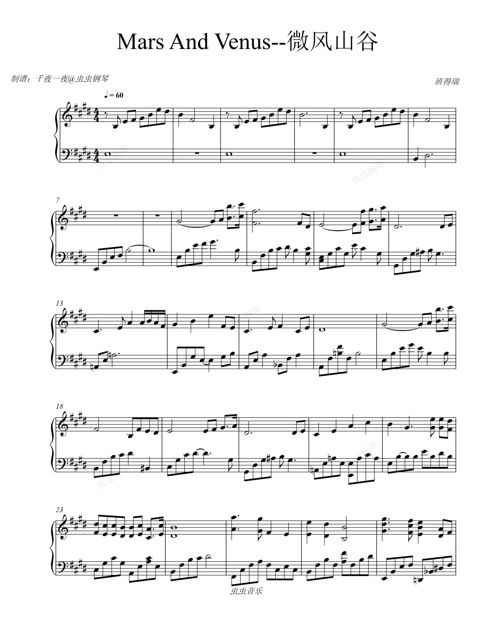 钢琴谱:Mars And Venus--微风山谷 班得瑞