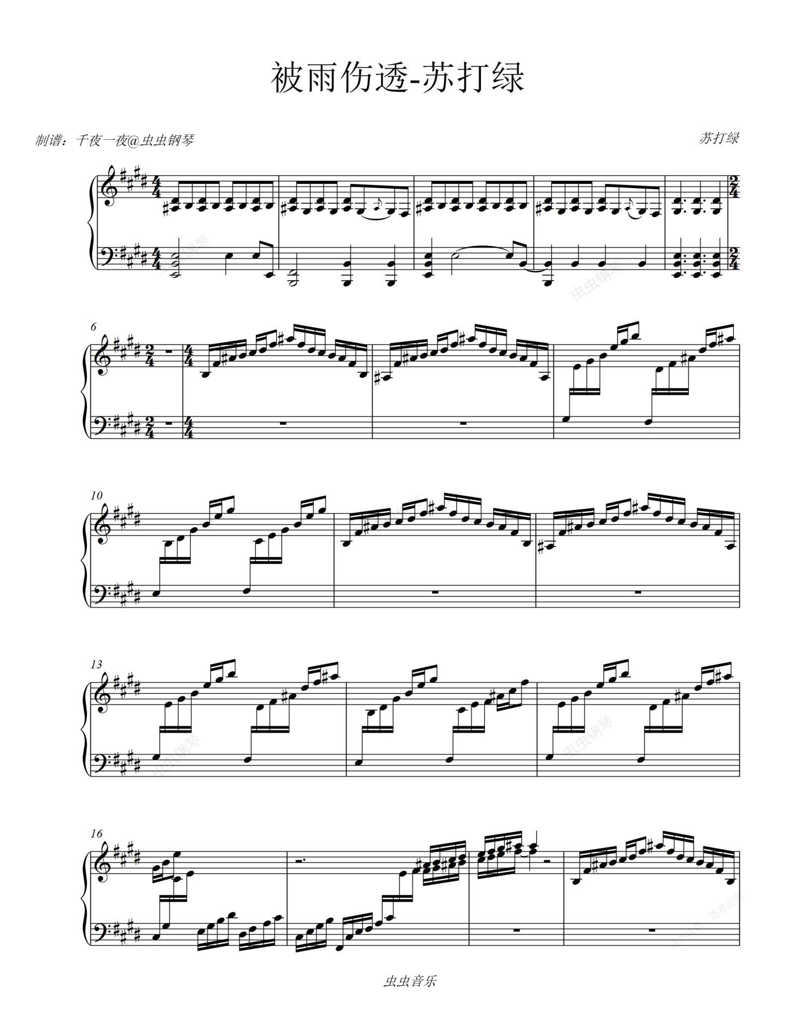 钢琴谱:苏打绿《被雨伤透》那天的雨下得恰到好处 把仅存的线索弄得模糊!