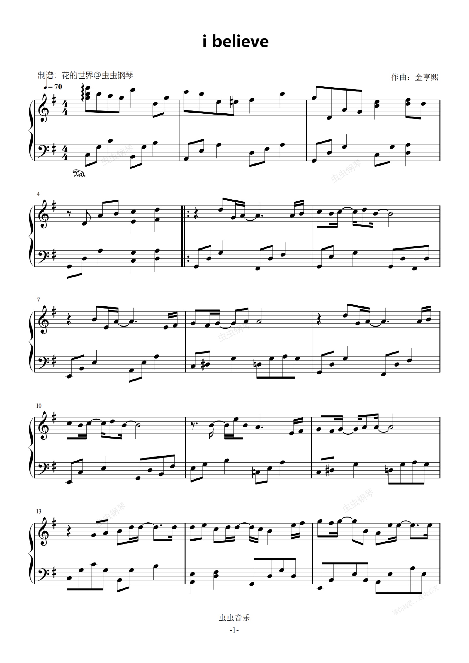 钢琴谱:I believe 原调简易版本 我的野蛮女友 流行经典 孙楠
