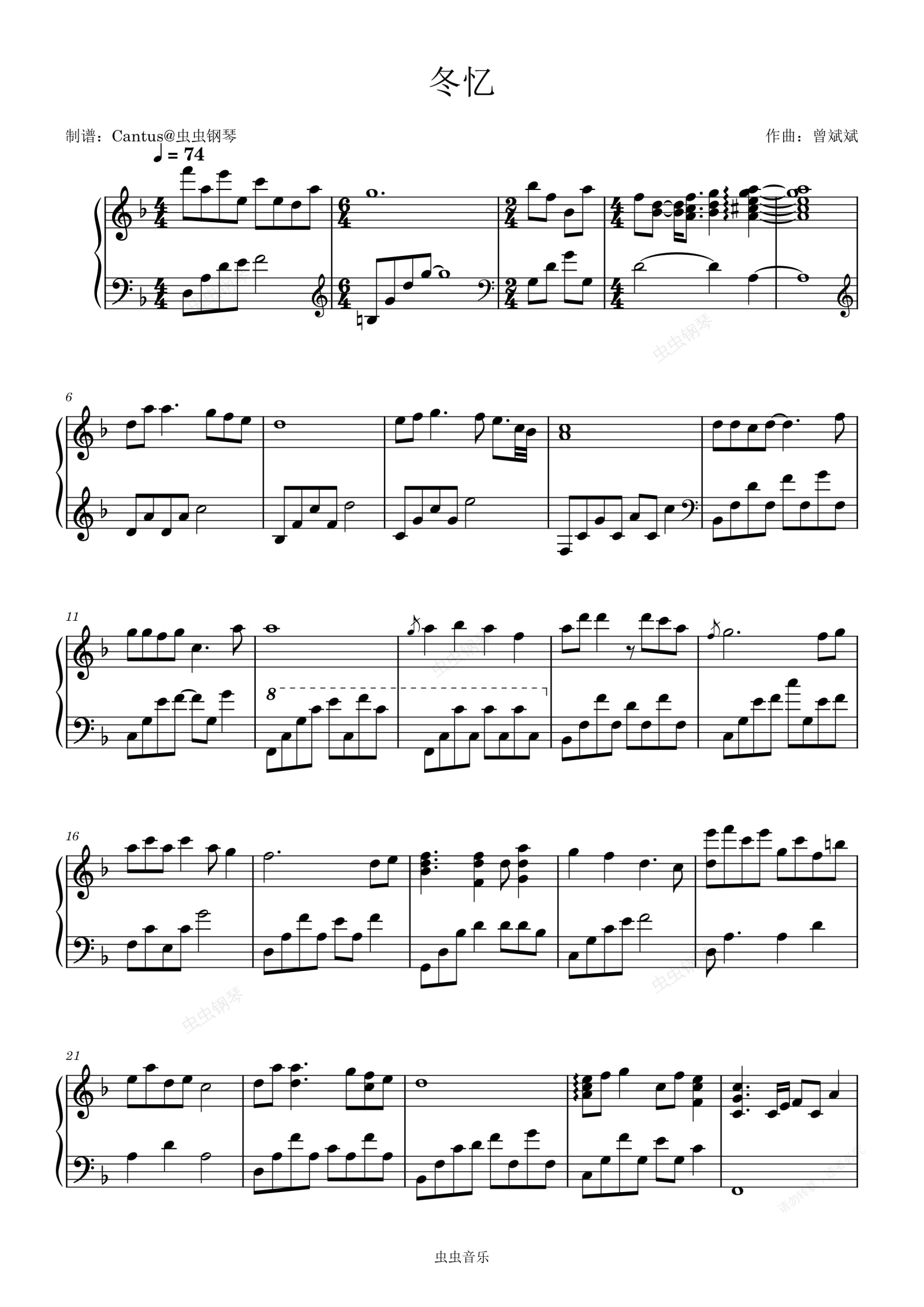 钢琴谱:冬忆