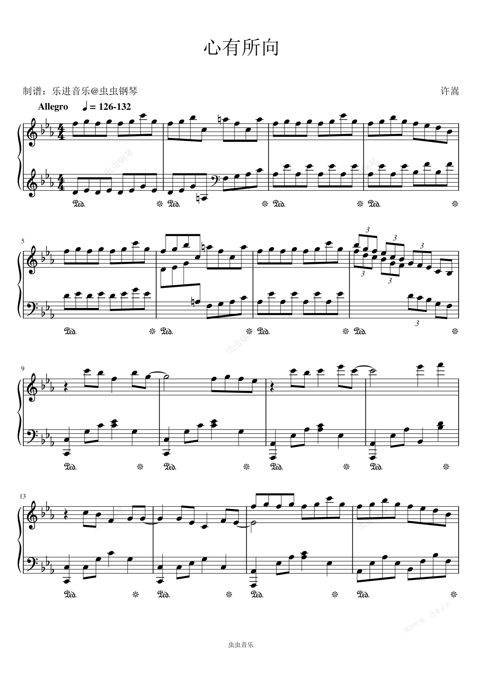 钢琴谱:许嵩&朗朗《心有所向》原调