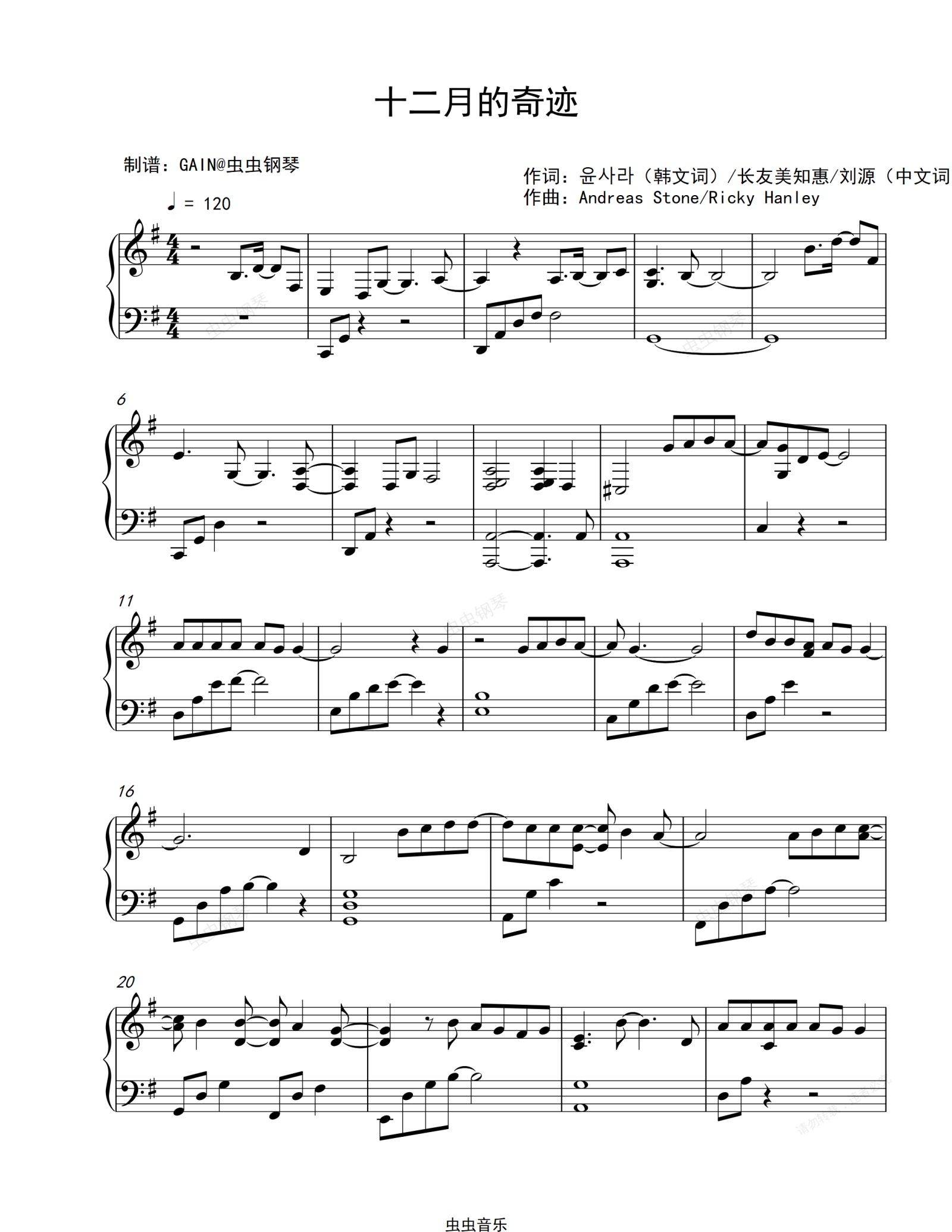 钢琴谱:十二月的奇迹-简易版-EXO