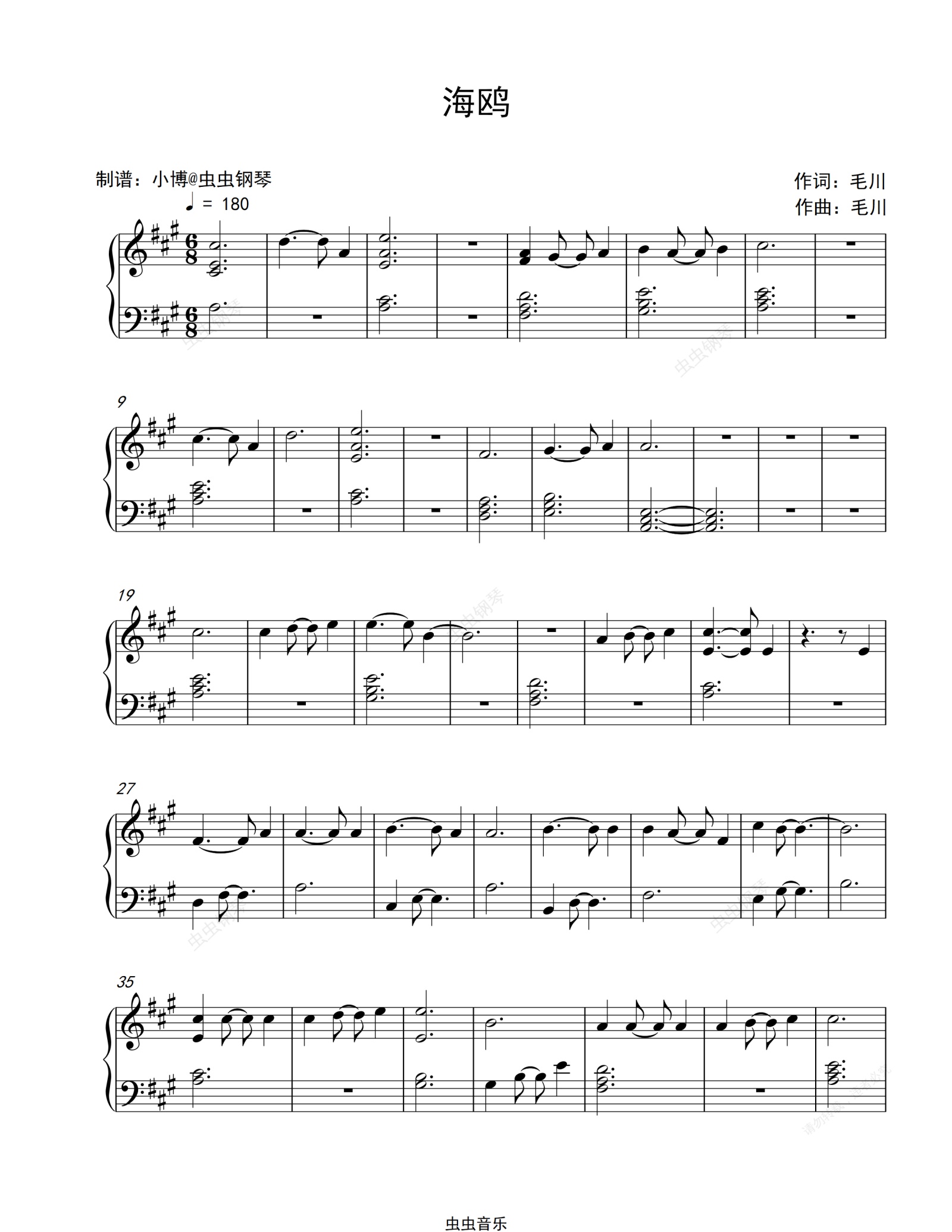 钢琴谱:海鸥-逃跑计划
