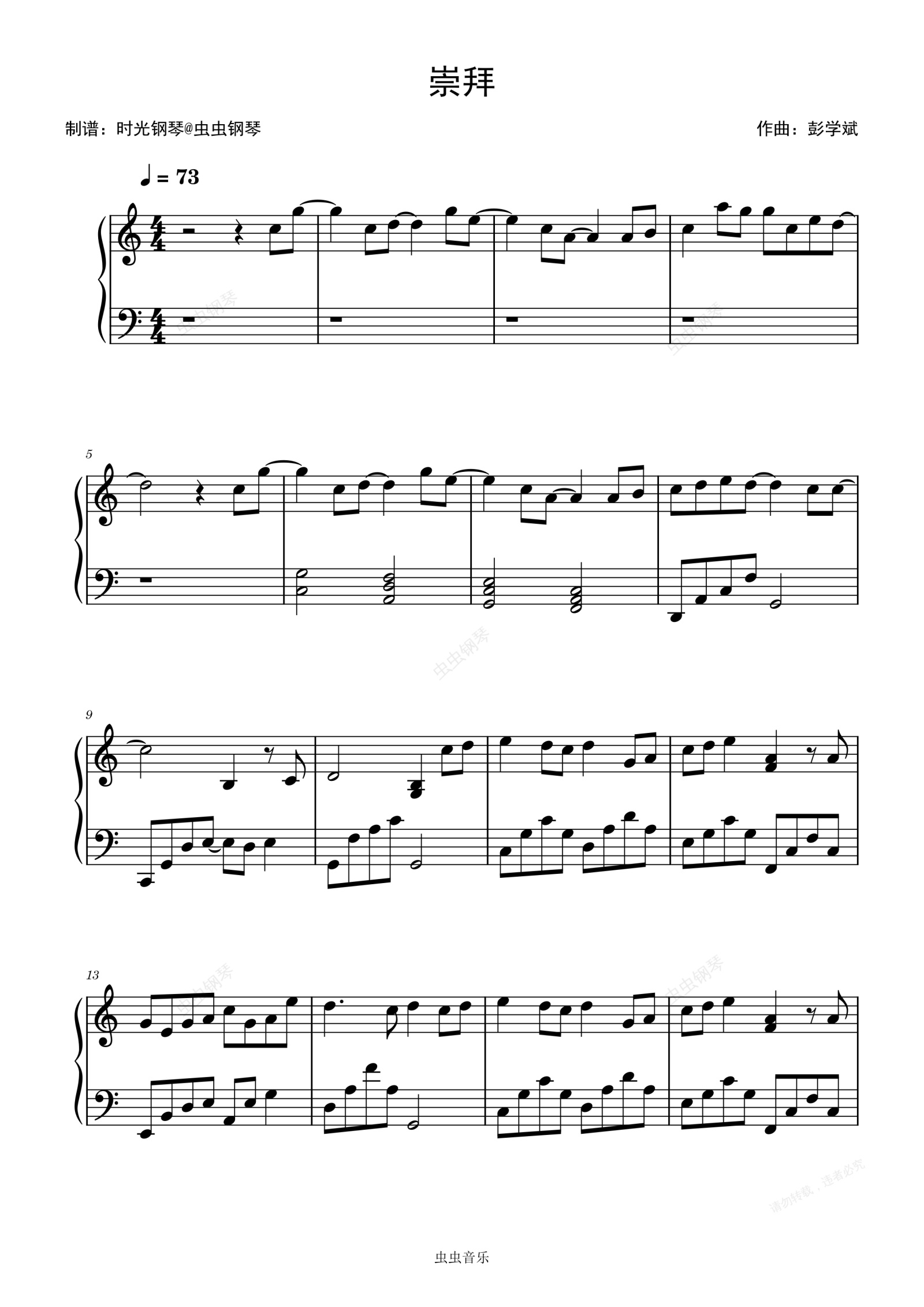 钢琴谱:崇拜 梁静茹 简单动听