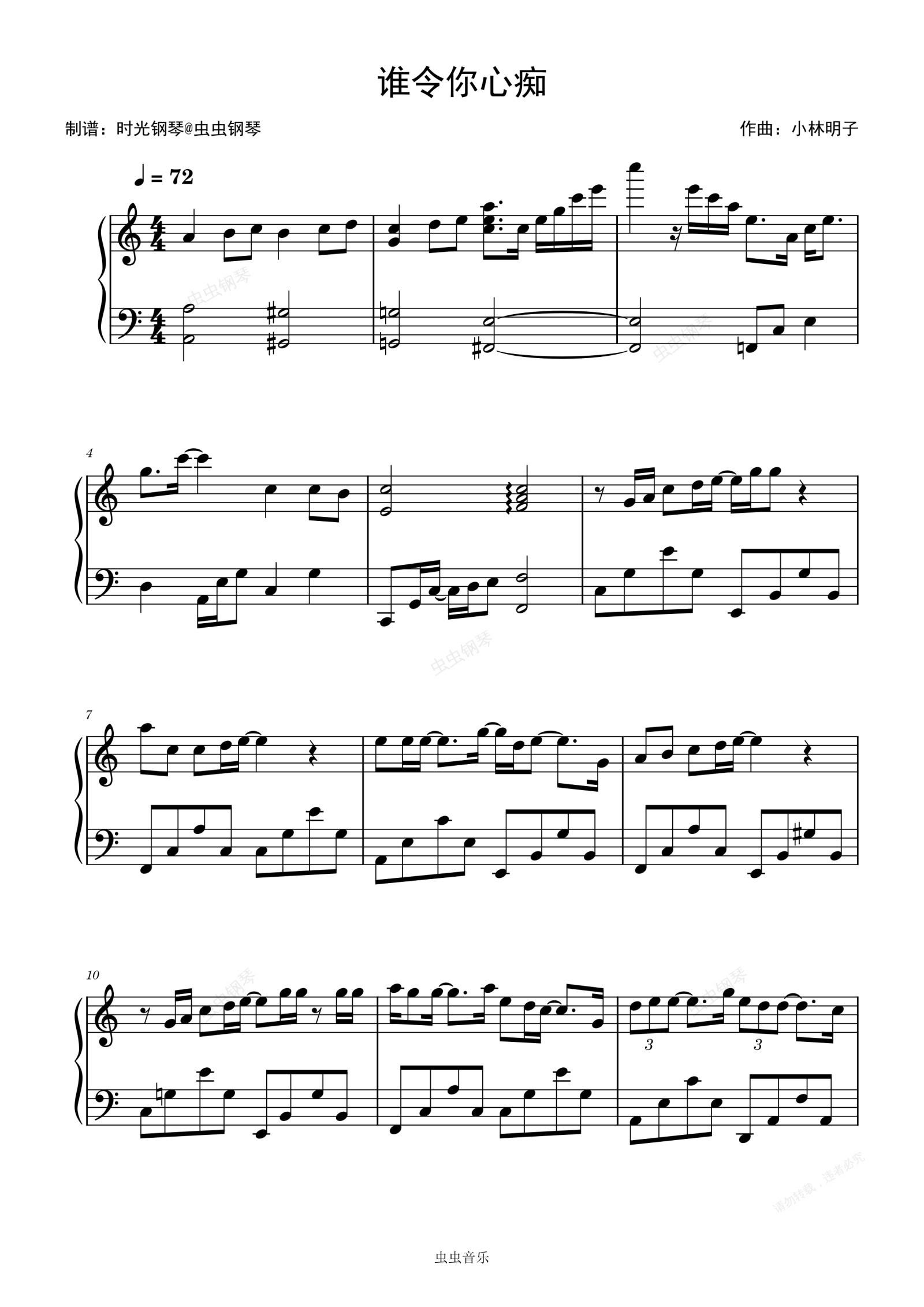 钢琴谱:谁令你心痴 张国荣 简单动听