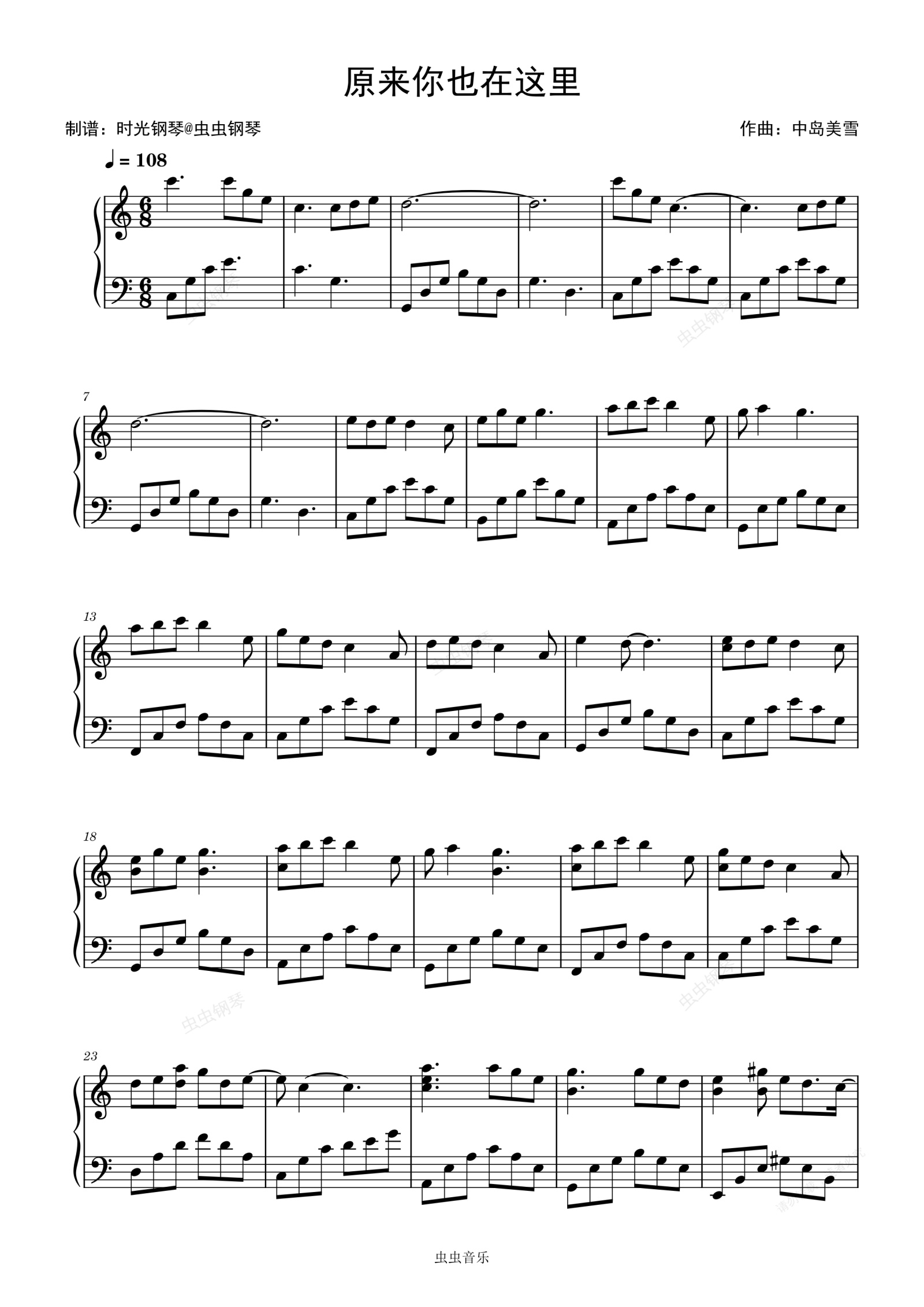 钢琴谱:原来你也在这里 刘若英 简单动听