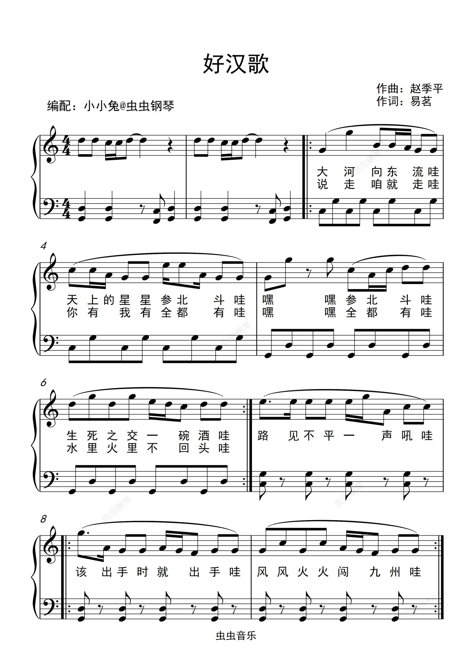 钢琴谱:好汉歌 C调 拜厄程度