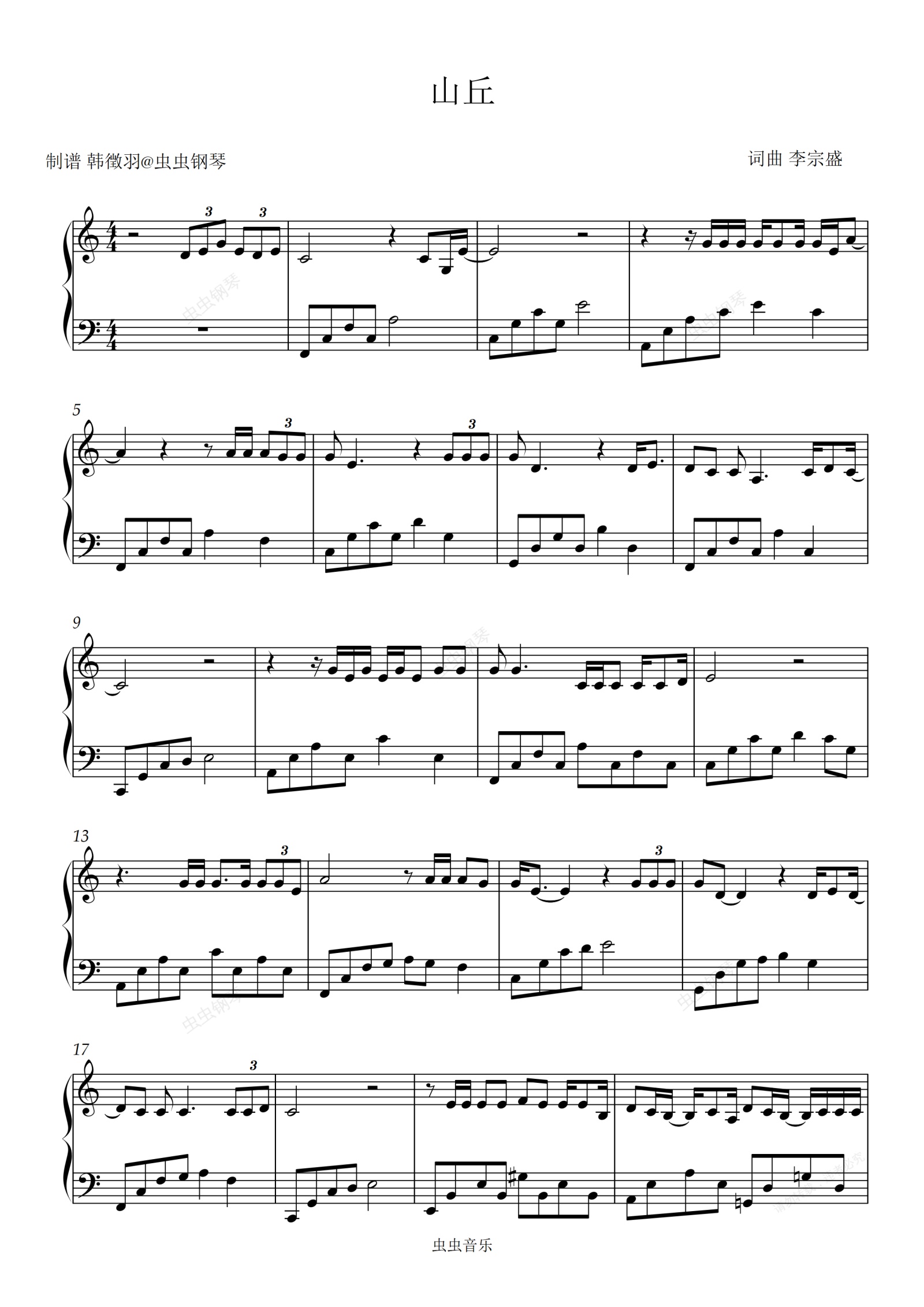 钢琴谱:山丘 李宗盛 C调好听易弹