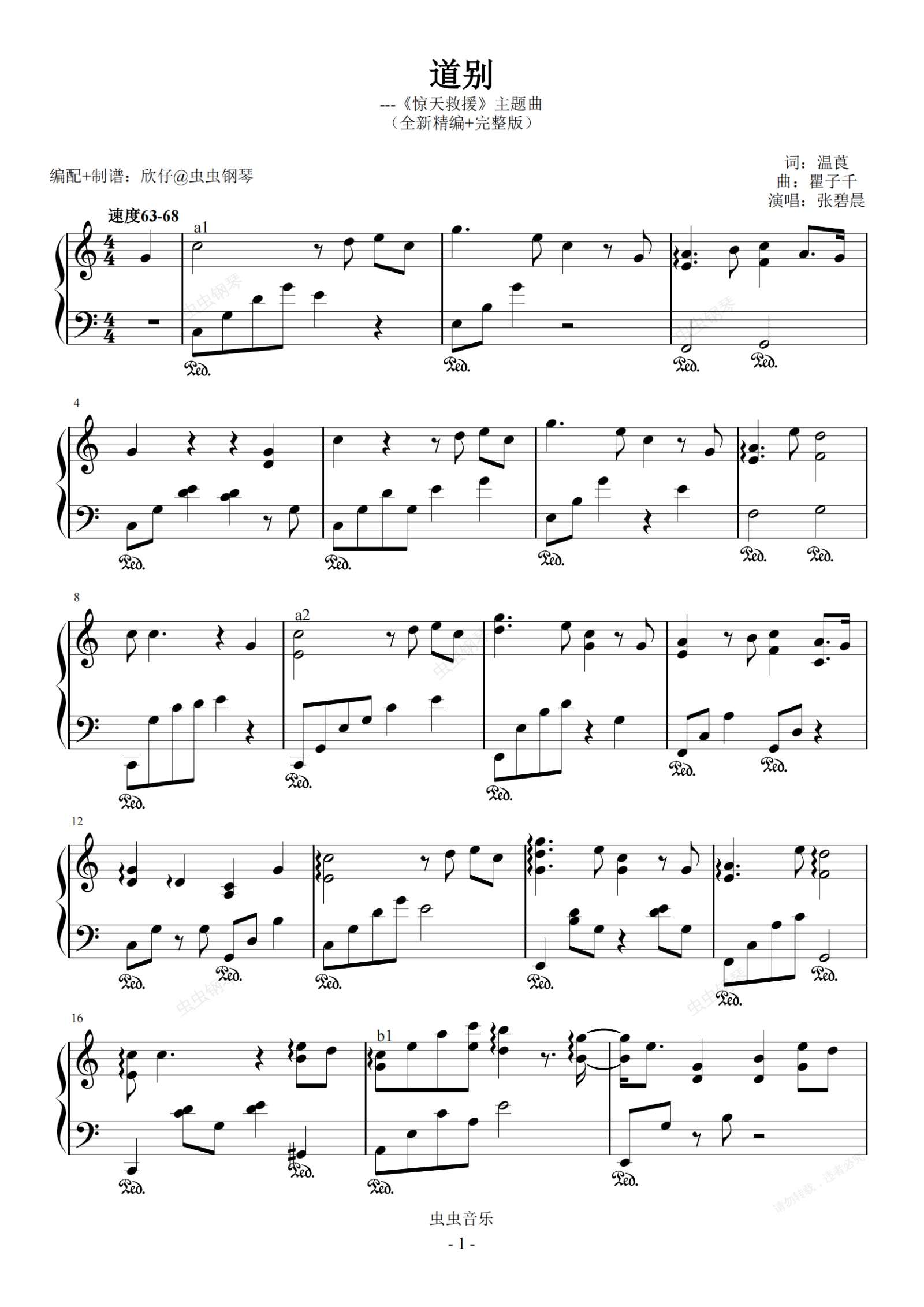 钢琴谱:张碧晨-C《道别》(《惊天救援》主题曲、完整版)