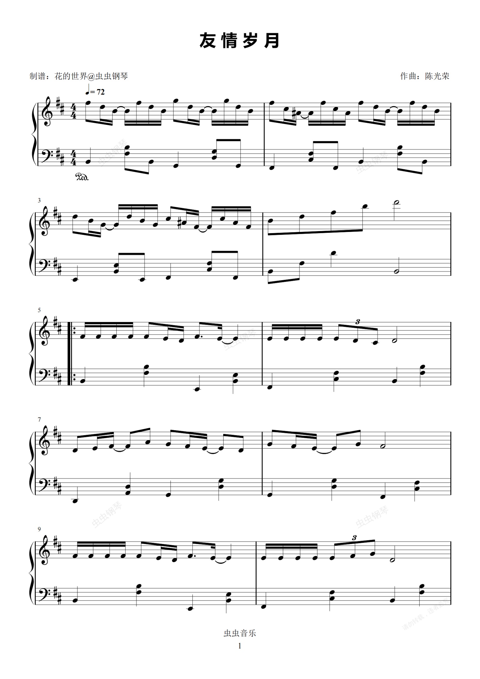 钢琴谱:友情岁月 原调简易版 郑伊健