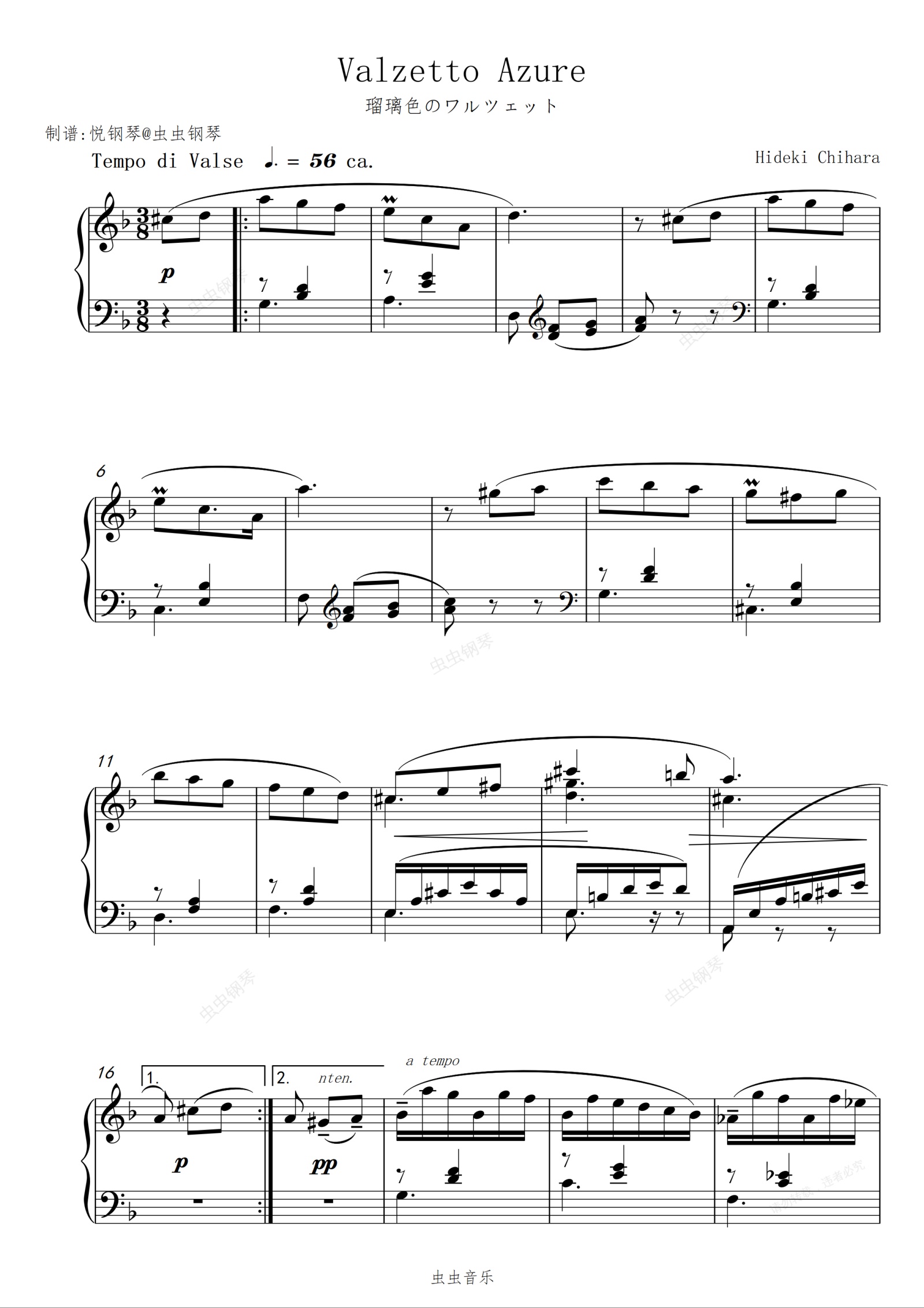 钢琴谱:瑠璃色的华尔兹【忧郁-唯美】