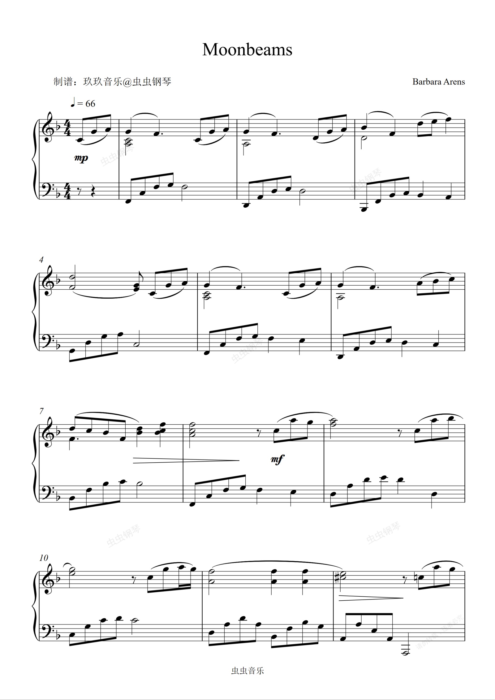 钢琴谱:Moonbeams—Barbara Arens