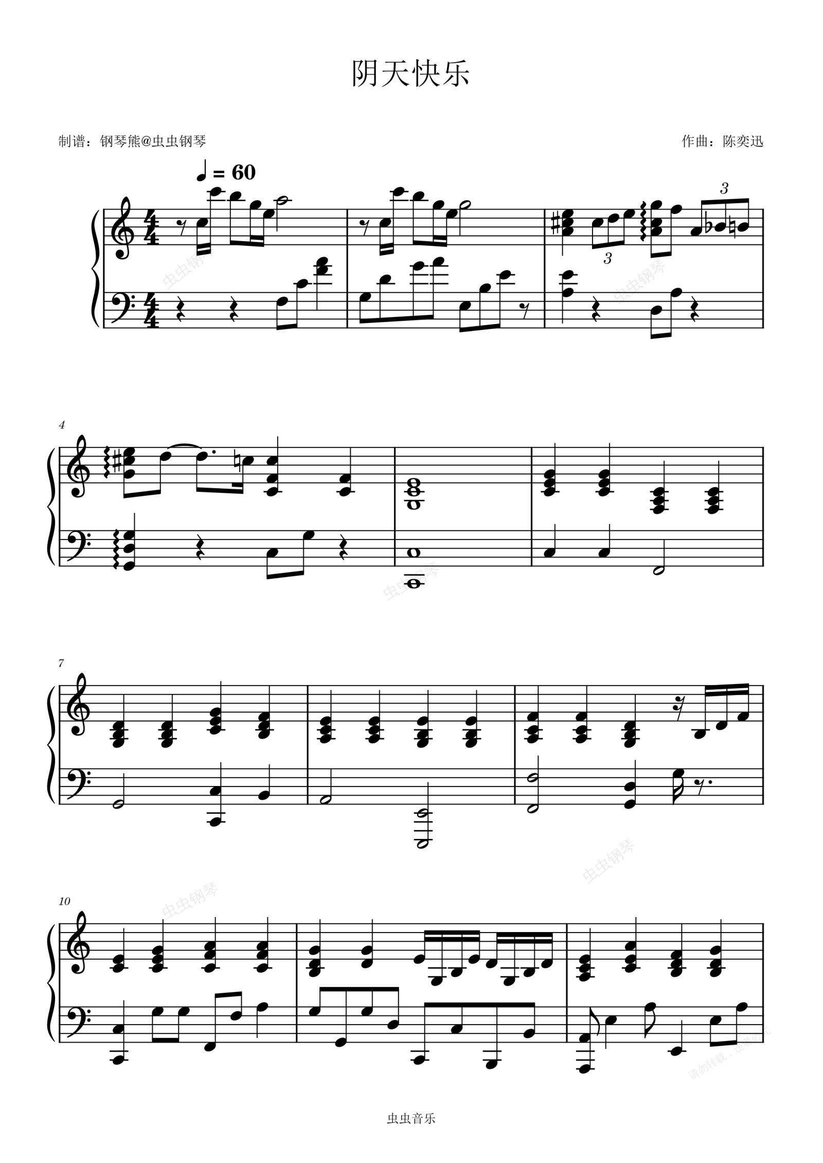 钢琴谱:阴天快乐 钢琴弹唱版~~~陈奕迅