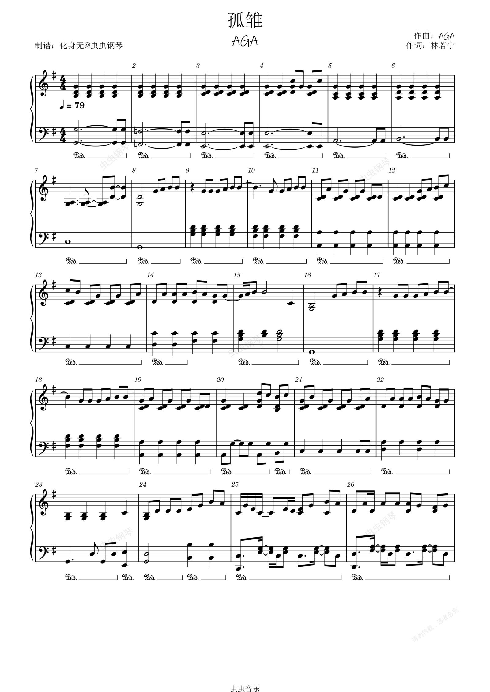 钢琴谱:孤雏 原调独奏版 化身无编配
