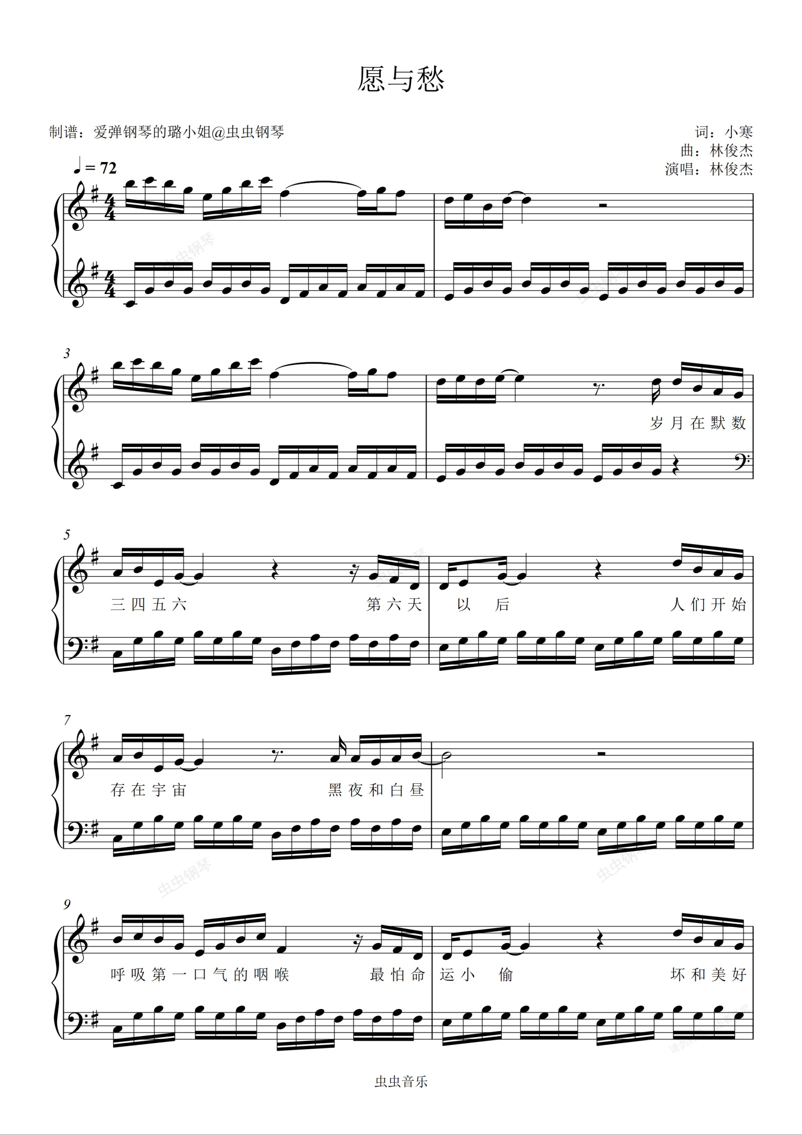 钢琴谱:愿与愁 - 林俊杰 - 原调简易完整版 - 附歌词