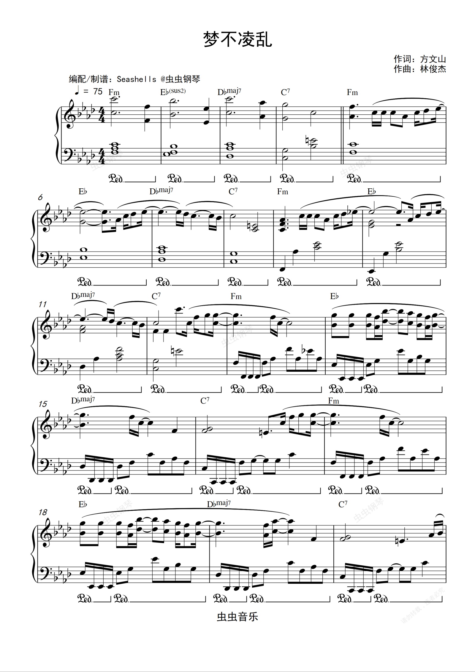钢琴谱:林俊杰-《梦不凌乱》精编钢琴独奏