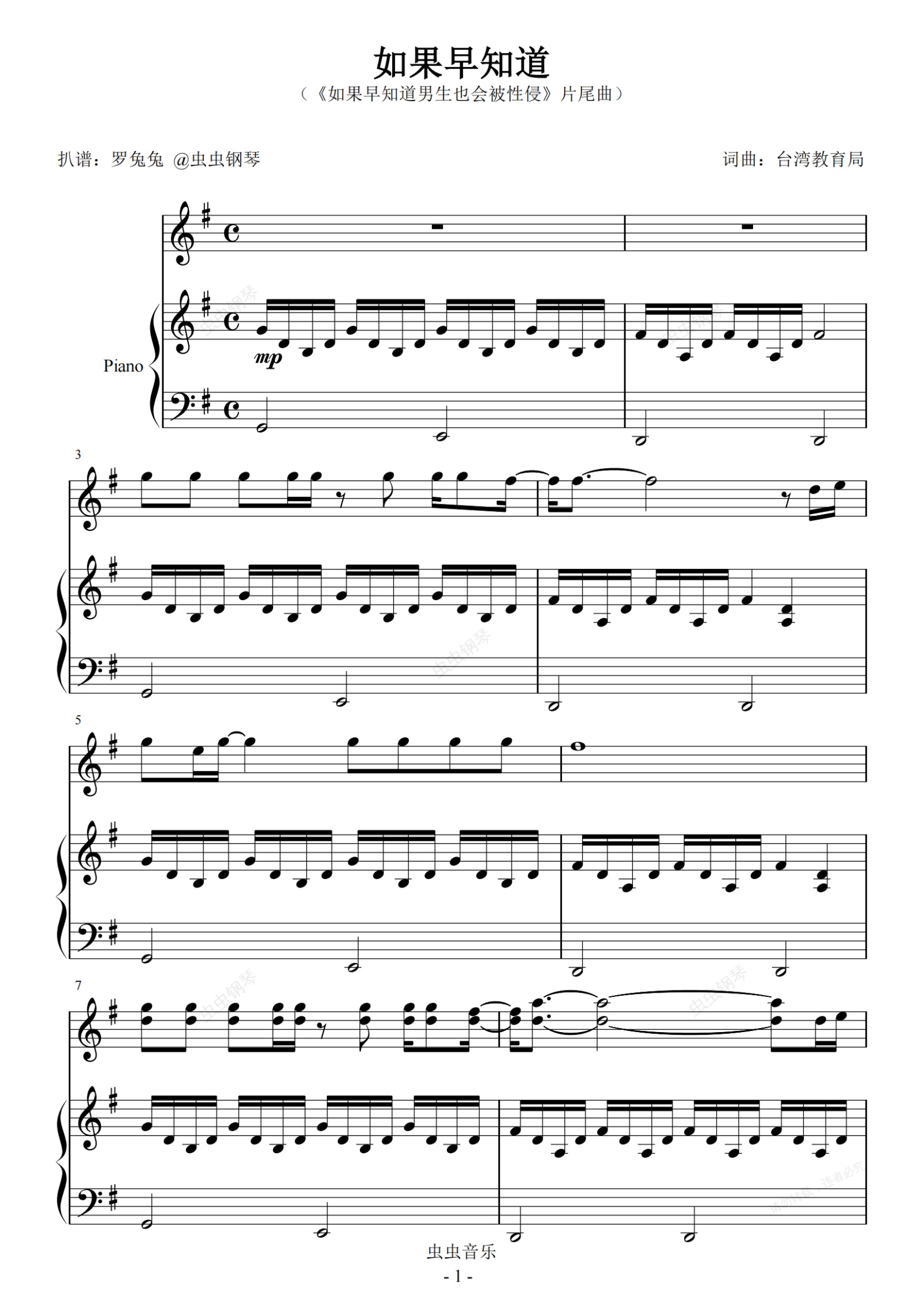 钢琴谱:如果早知道(《如果早知道男生也会被性侵》片尾曲)