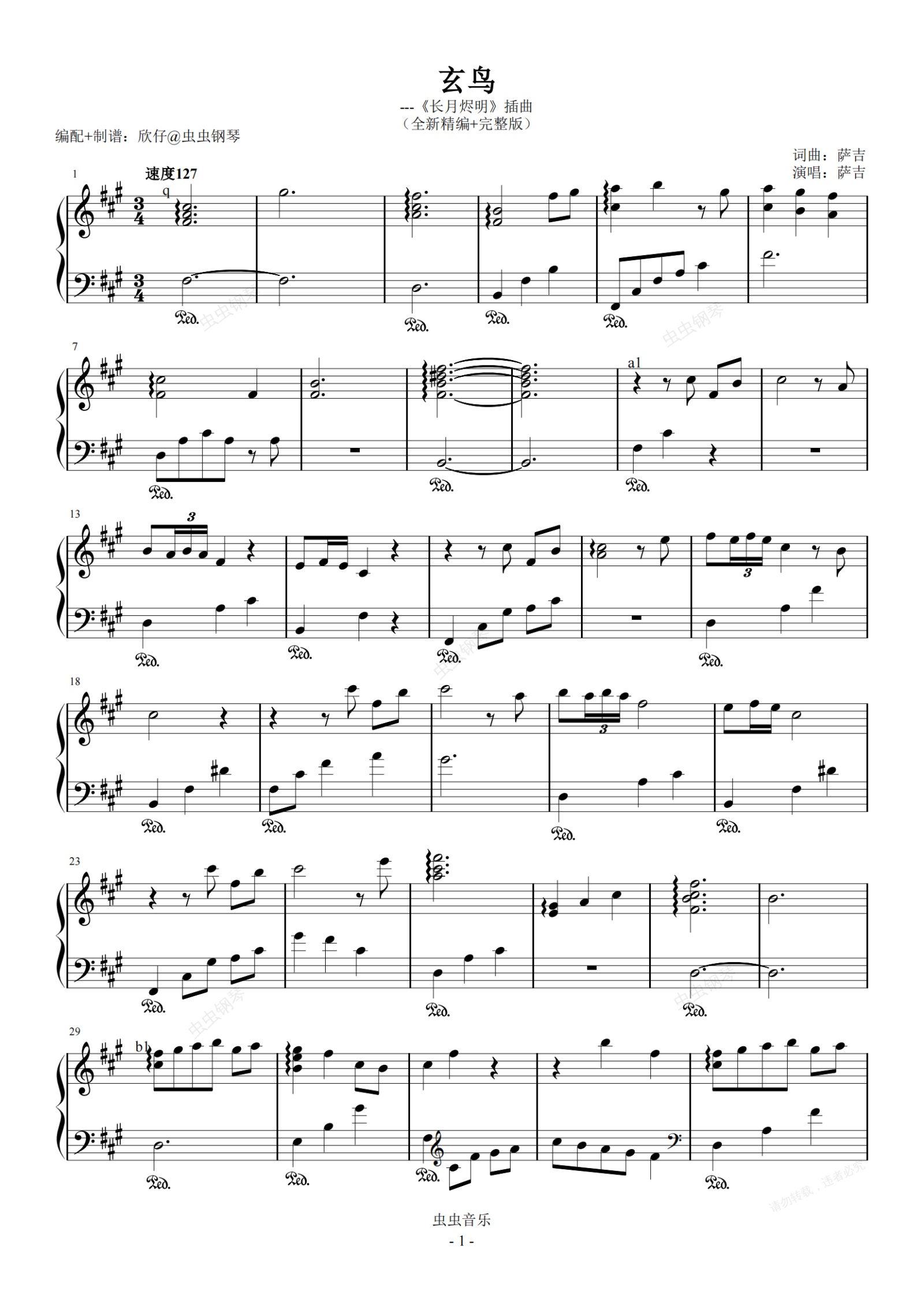 钢琴谱:萨吉-升f《玄鸟》(《长月烬明》插曲、完整版)