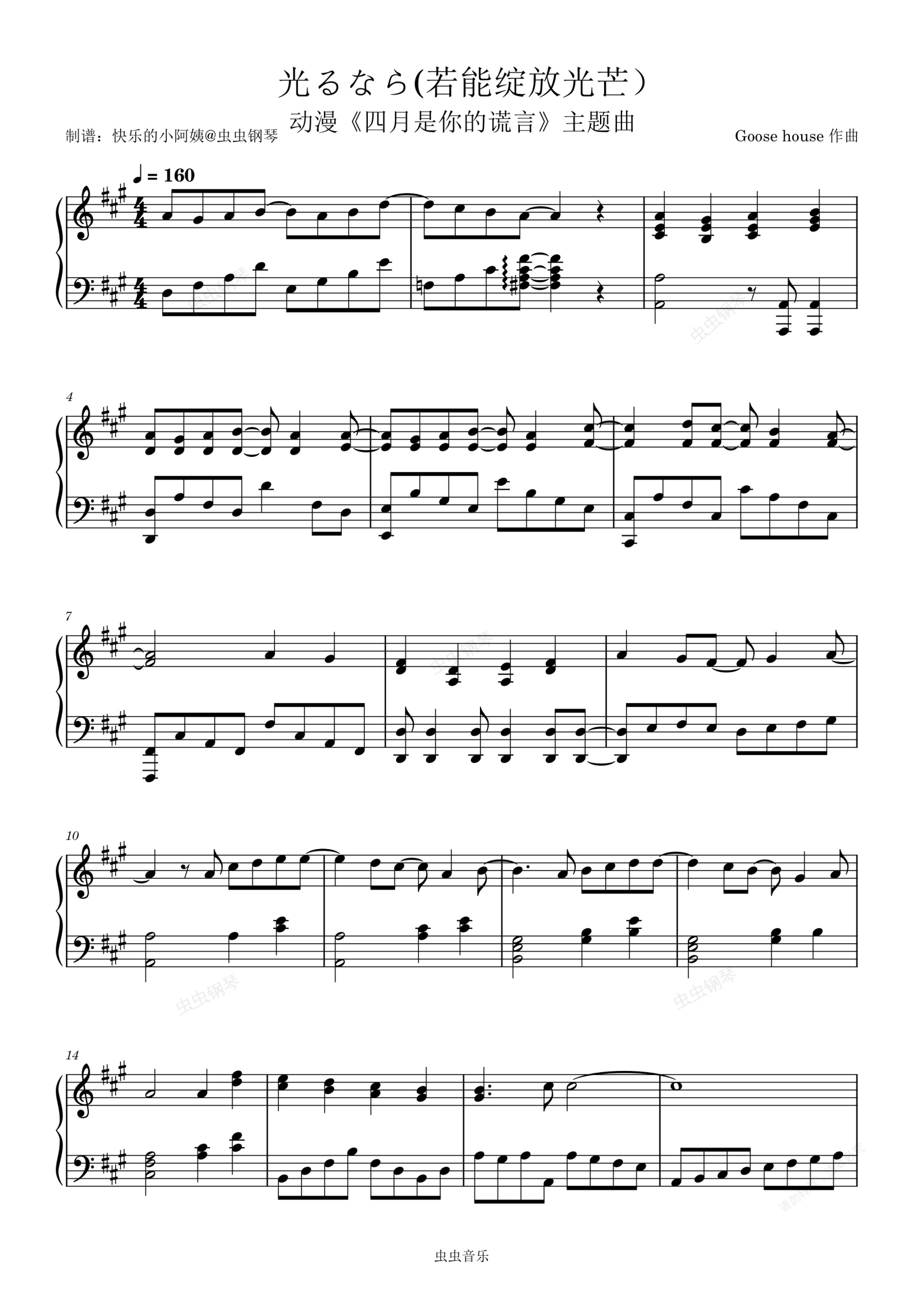 钢琴谱:光るなら(若能绽放光芒)动漫《四月是你的谎言》主题曲