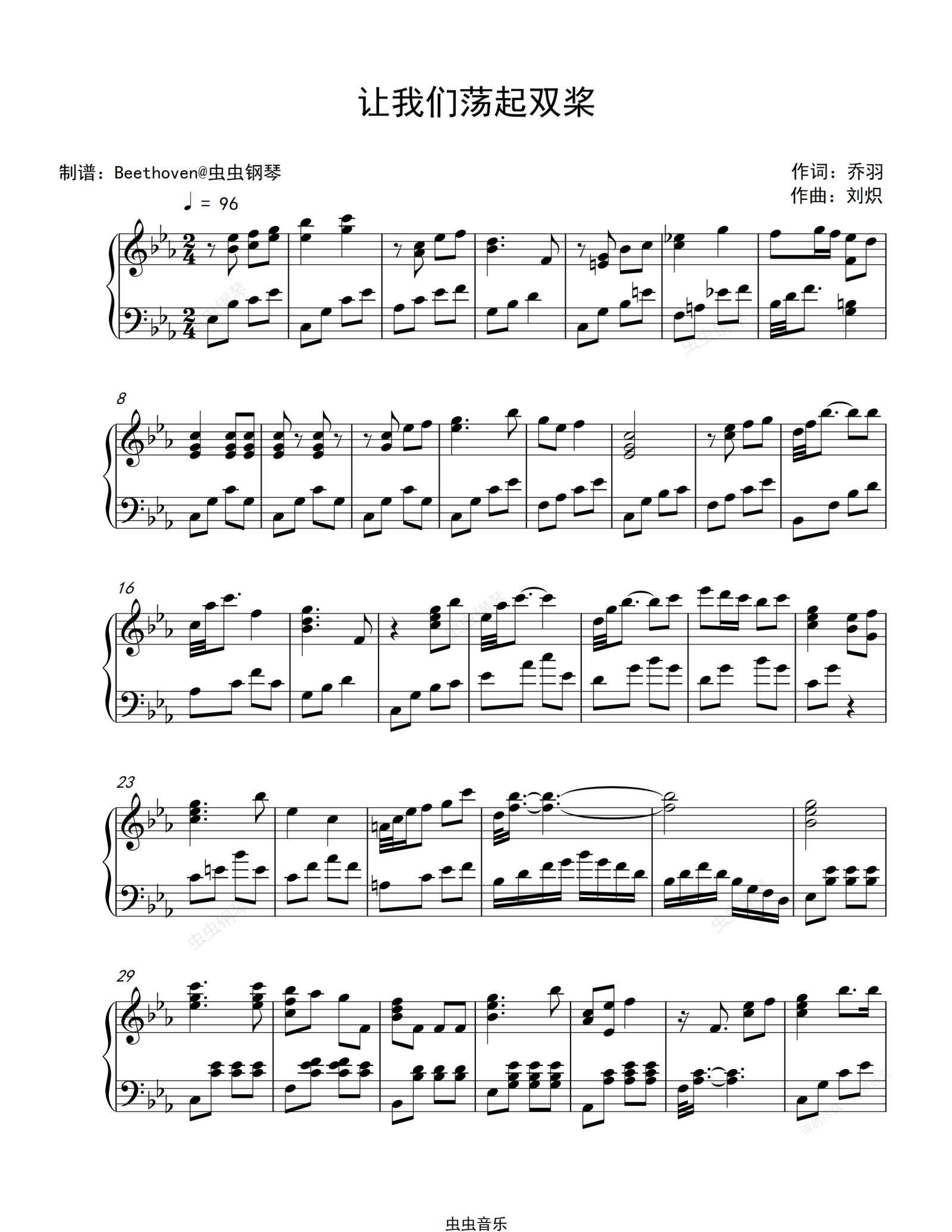 钢琴谱:让我们荡起双桨-《祖国的花朵》主题曲-刘炽