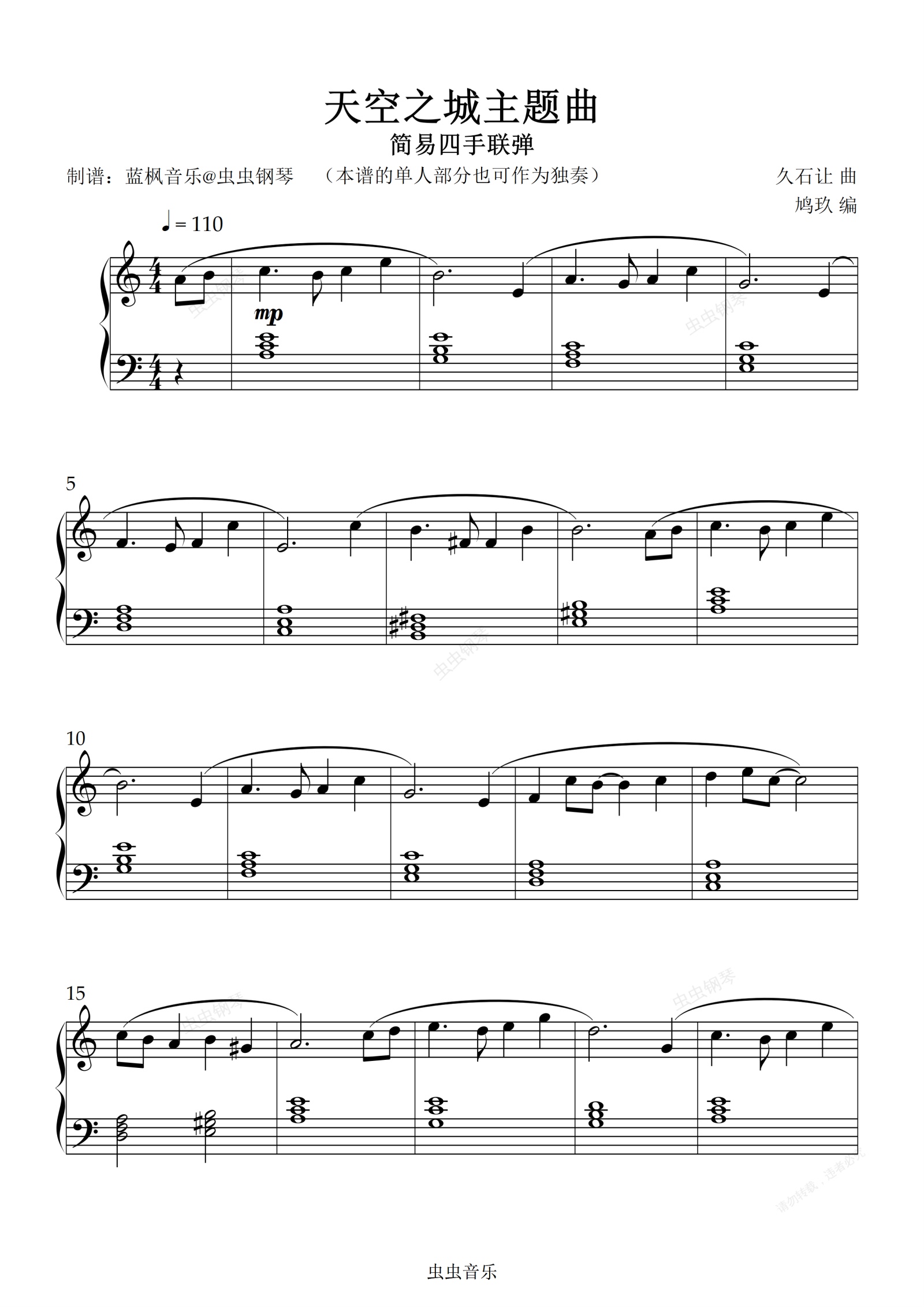 钢琴谱:天空之城主题曲 四手联弹(主)