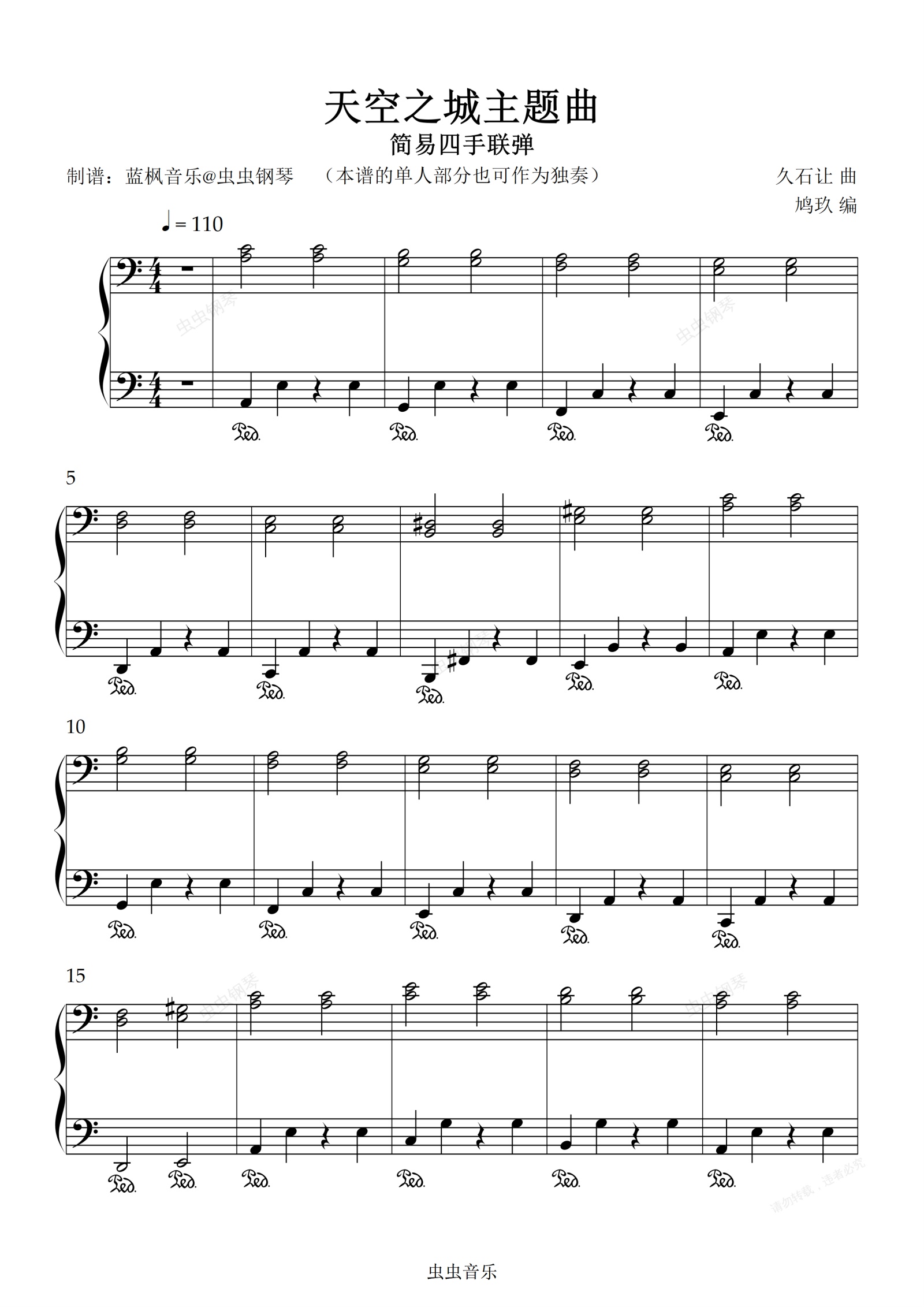 钢琴谱:天空之城主题曲 四手联弹(次)