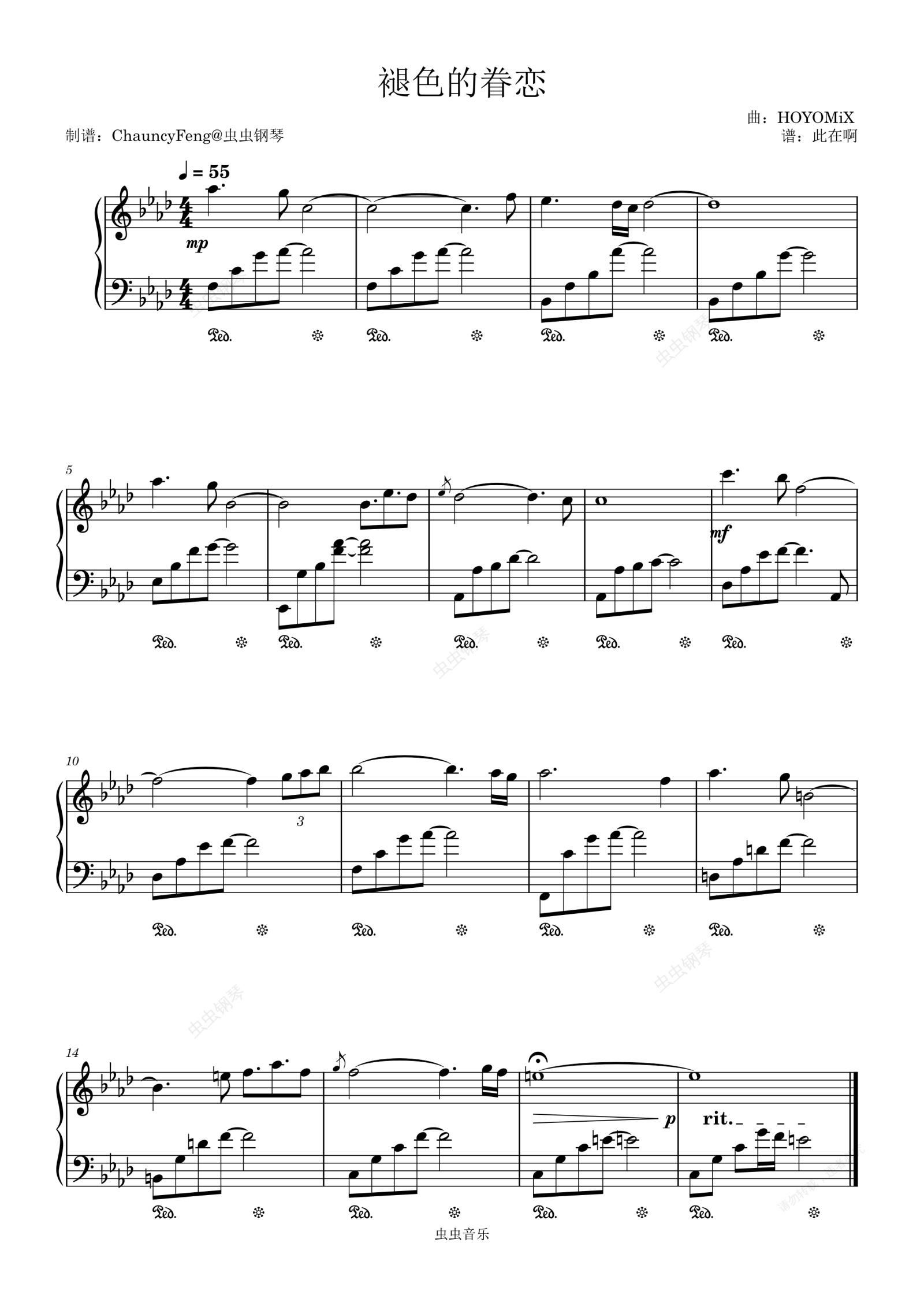 钢琴谱:褪色的眷恋(《原神》第二张须弥OST「啁哳流变之砂」)