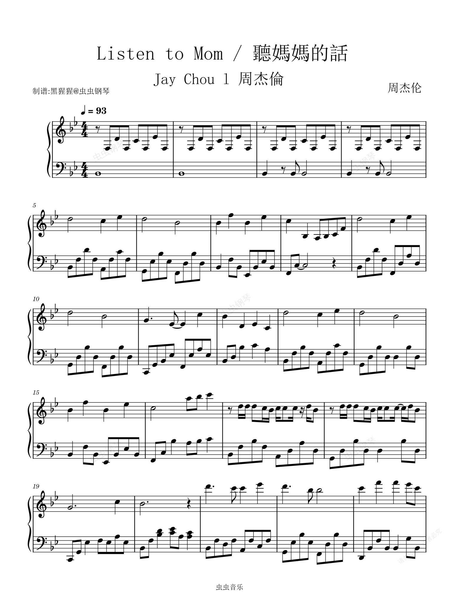 钢琴谱:周杰伦-Bb调 《听妈妈的话》