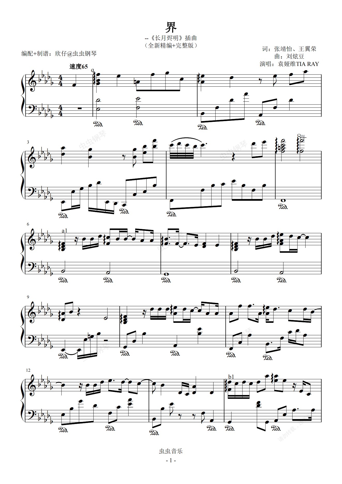 钢琴谱:袁娅维-降b《界》(《长月烬明》插曲,完整版)