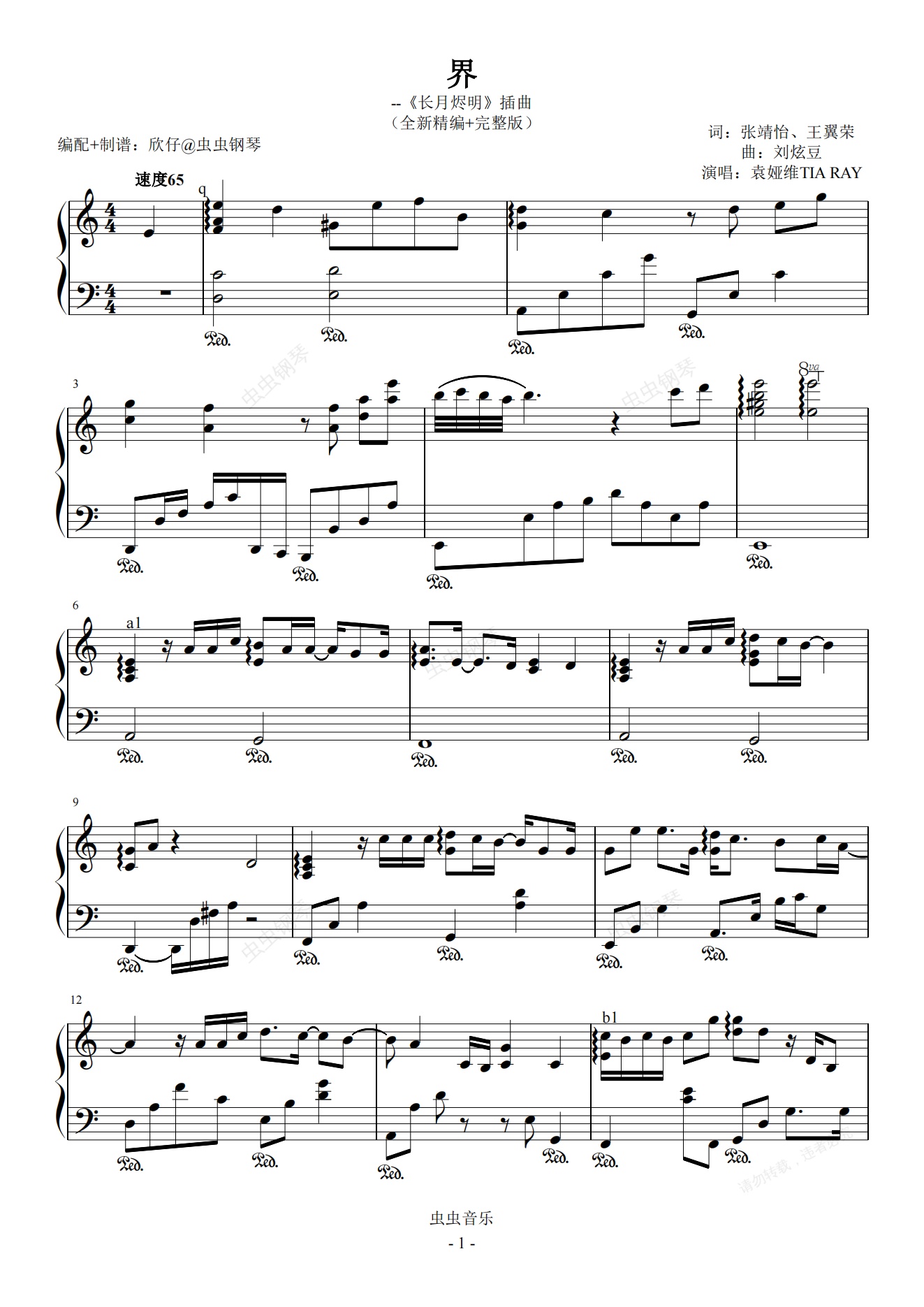 钢琴谱:袁娅维-a《界》(《长月烬明》插曲,完整版)