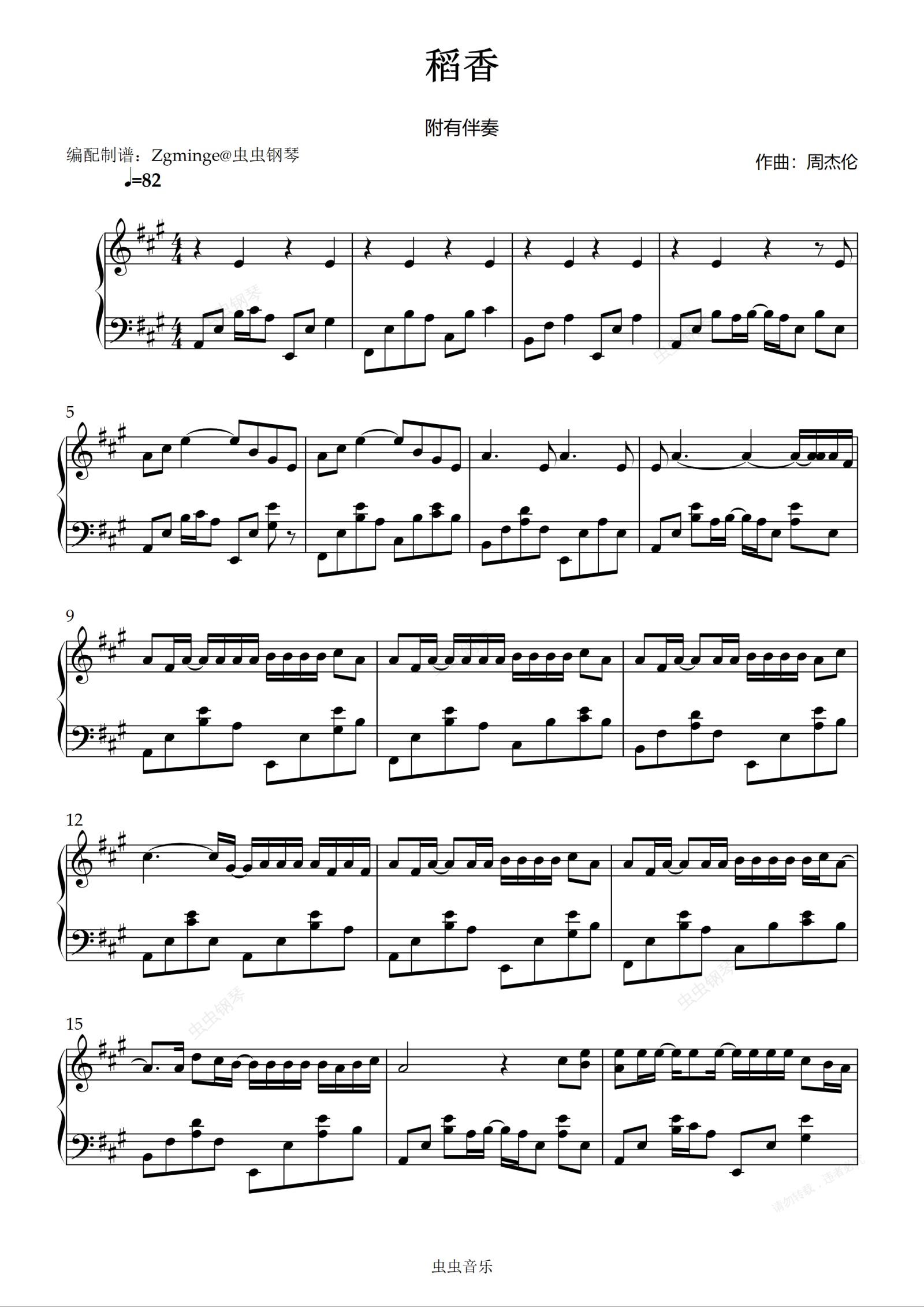 钢琴谱:稻香 精编-附带原版高还原度伴奏